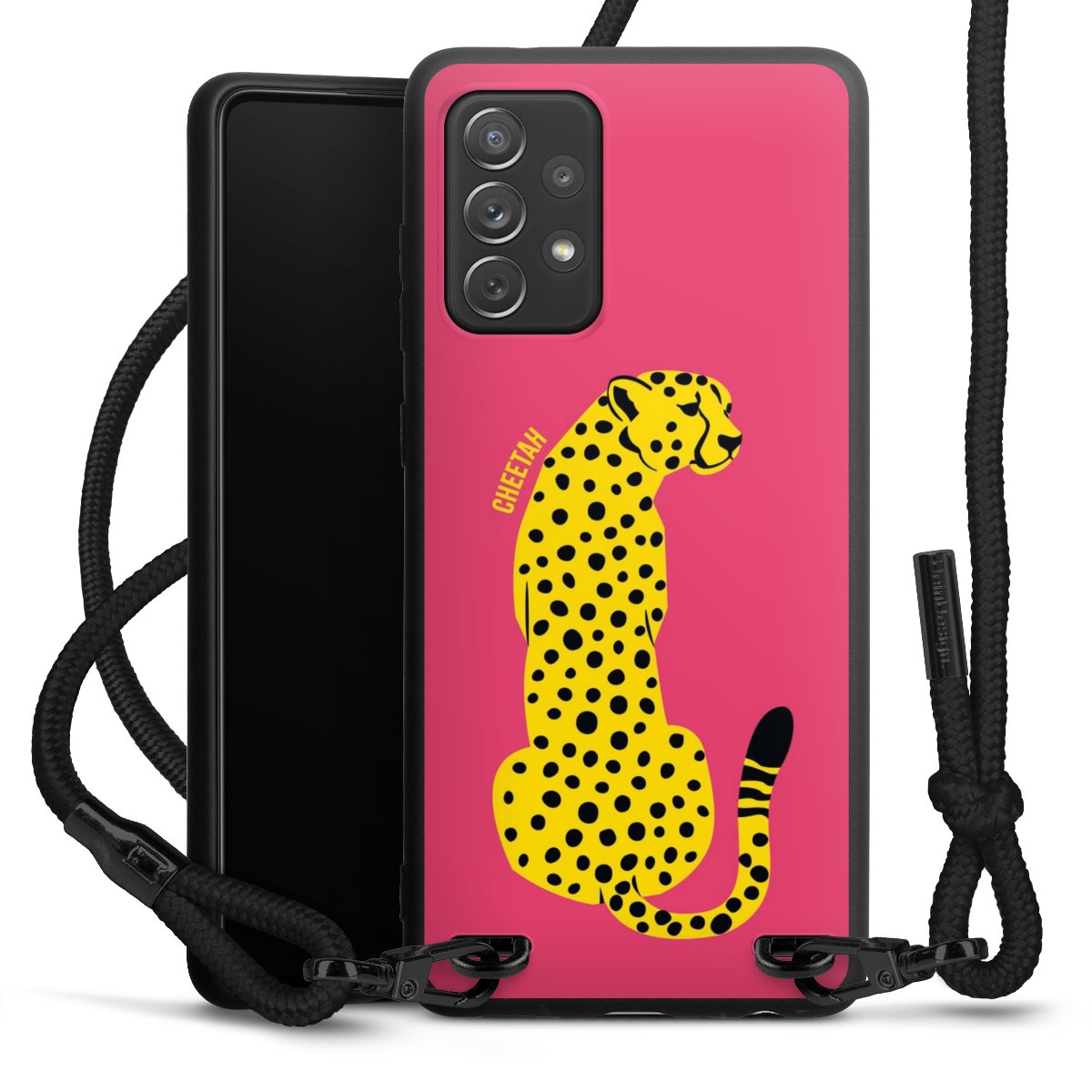 We use the solid direct print process for this phone case, which is why the print area only covers the back and the edge remains unprinted. The case to wear around your neck can be ordered unprinted, fully printed, or partially printed. For your design, either choose one of our exclusive shop motifs or get creative and create your own design, for example with photos and overlays. Design your own personal trend accessory and make an individual statement on the streets!