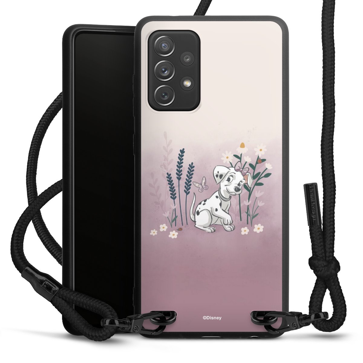 The matt black silicone case is made of flexible TPU (thermoplastic polyurethane) and offers robust protection. The durable, unbreakable material makes the cover flexible and dimensionally stable at the same time. The matte surface makes your design stand out more and is less susceptible to fingerprints and dirt. The stylish trend accessory fits comfortably in the hand and is perfectly complemented by the fabric (polyester) mobile phone strap. The braided fabric strap is approx. 1.70 metres long with a diameter of approx. 0.5 cm. Due to the special knotting technique, the length of the strap can be adjusted by simply pulling it, so that you can adapt it individually to your wishes. The practical case to wear around your neck is available with the fabric strap in black. As a little icing on the cake, we have provided the strap with a chic metal fastener in matt black. The strap is securely fastened to the case with loops made of high-quality genuine leather and press studs. The ends of the fabric strap are covered with metallic end caps and thus protected from fraying.