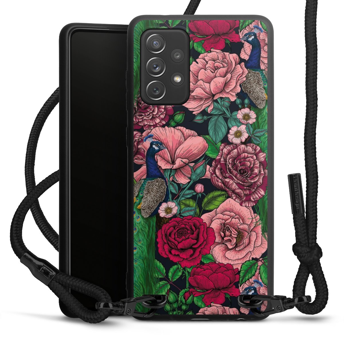 We use the solid direct print process for this phone case, which is why the print area only covers the back and the edge remains unprinted. The case to wear around your neck can be ordered unprinted, fully printed, or partially printed. For your design, either choose one of our exclusive shop motifs or get creative and create your own design, for example with photos and overlays. Design your own personal trend accessory and make an individual statement on the streets!