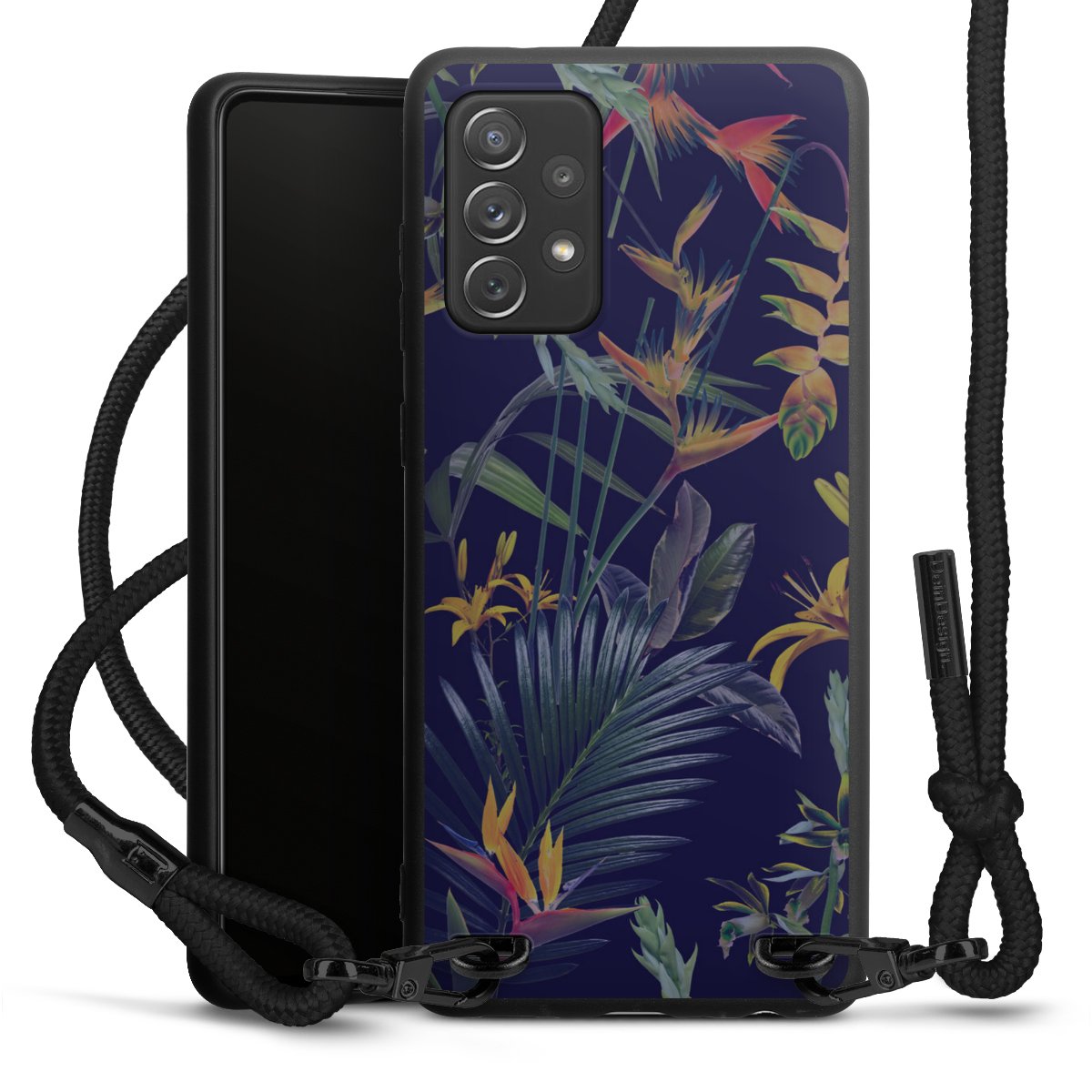 We use the solid direct print process for this phone case, which is why the print area only covers the back and the edge remains unprinted. The case to wear around your neck can be ordered unprinted, fully printed, or partially printed. For your design, either choose one of our exclusive shop motifs or get creative and create your own design, for example with photos and overlays. Design your own personal trend accessory and make an individual statement on the streets!