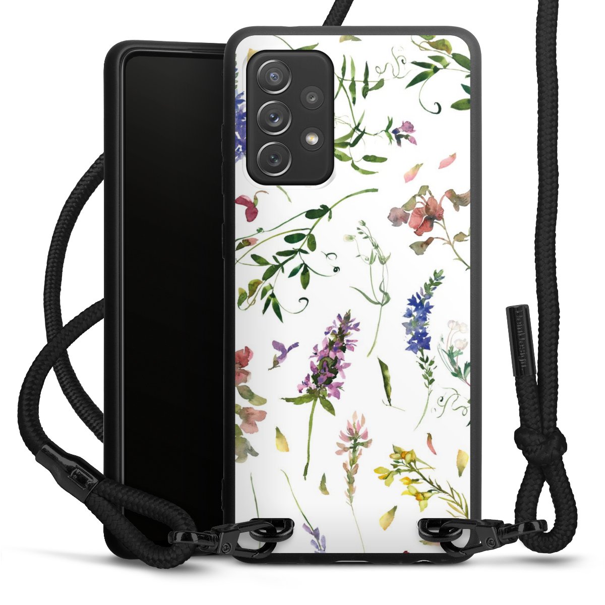 We use the solid direct print process for this phone case, which is why the print area only covers the back and the edge remains unprinted. The case to wear around your neck can be ordered unprinted, fully printed, or partially printed. For your design, either choose one of our exclusive shop motifs or get creative and create your own design, for example with photos and overlays. Design your own personal trend accessory and make an individual statement on the streets!