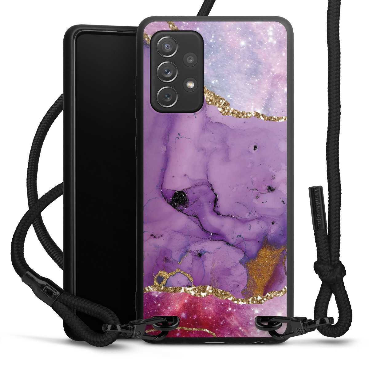 We use the solid direct print process for this phone case, which is why the print area only covers the back and the edge remains unprinted. The case to wear around your neck can be ordered unprinted, fully printed, or partially printed. For your design, either choose one of our exclusive shop motifs or get creative and create your own design, for example with photos and overlays. Design your own personal trend accessory and make an individual statement on the streets!