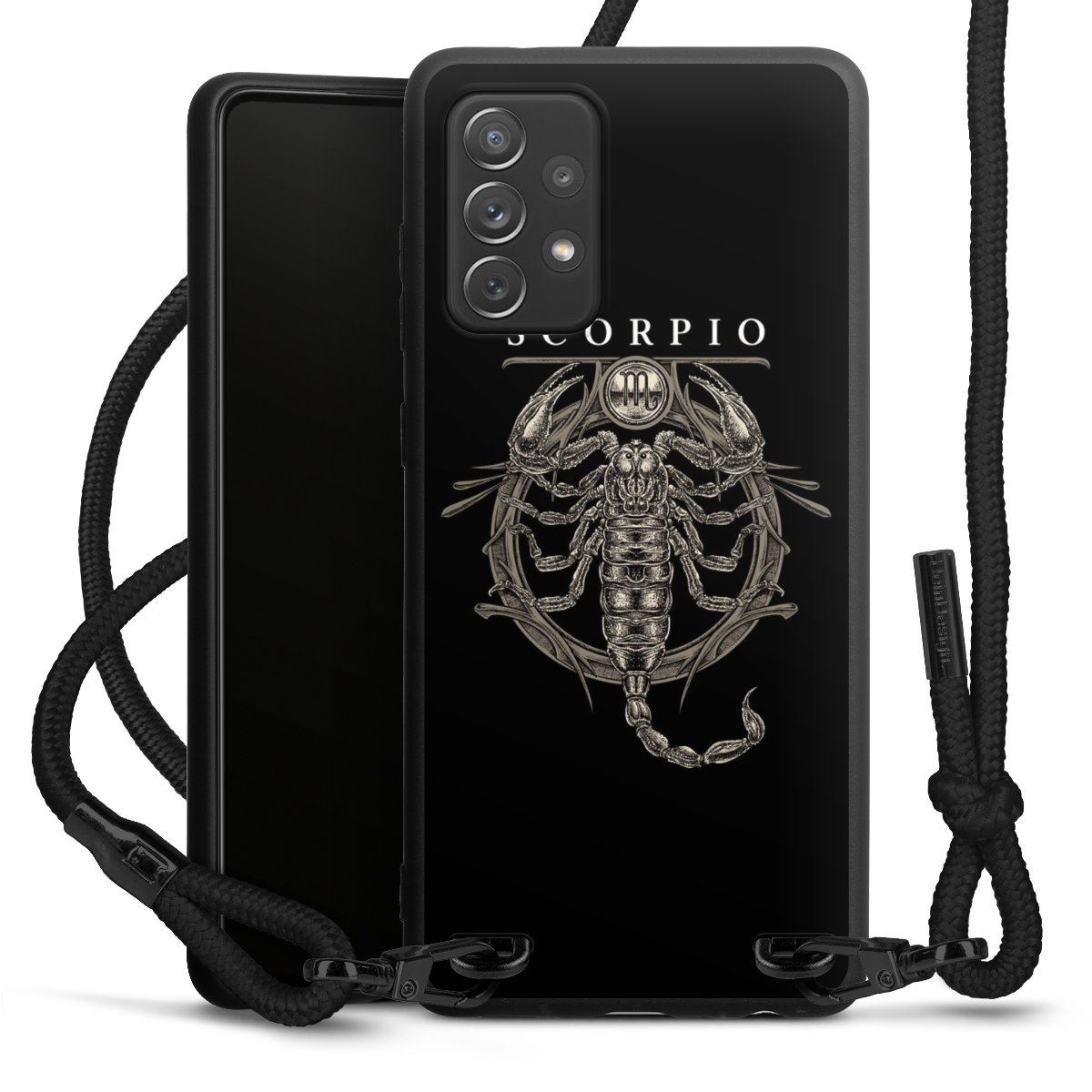 The matt black silicone case is made of flexible TPU (thermoplastic polyurethane) and offers robust protection. The durable, unbreakable material makes the cover flexible and dimensionally stable at the same time. The matte surface makes your design stand out more and is less susceptible to fingerprints and dirt. The stylish trend accessory fits comfortably in the hand and is perfectly complemented by the fabric (polyester) mobile phone strap. The braided fabric strap is approx. 1.70 metres long with a diameter of approx. 0.5 cm. Due to the special knotting technique, the length of the strap can be adjusted by simply pulling it, so that you can adapt it individually to your wishes. The practical case to wear around your neck is available with the fabric strap in black. As a little icing on the cake, we have provided the strap with a chic metal fastener in matt black. The strap is securely fastened to the case with loops made of high-quality genuine leather and press studs. The ends of the fabric strap are covered with metallic end caps and thus protected from fraying.