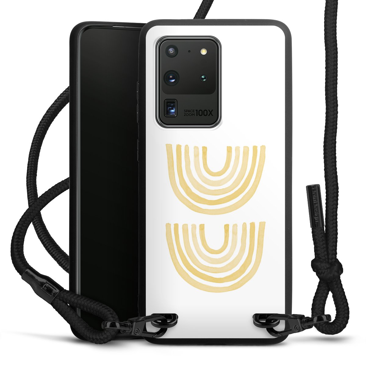 We use the solid direct print process for this phone case, which is why the print area only covers the back and the edge remains unprinted. The case to wear around your neck can be ordered unprinted, fully printed, or partially printed. For your design, either choose one of our exclusive shop motifs or get creative and create your own design, for example with photos and overlays. Design your own personal trend accessory and make an individual statement on the streets!