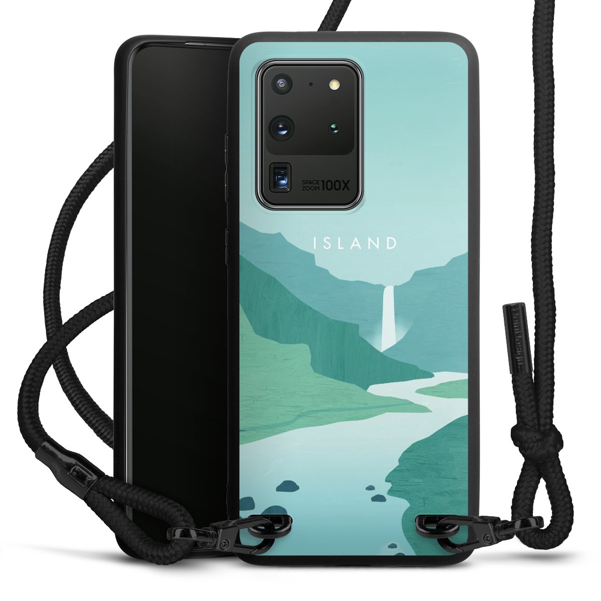 We use the solid direct print process for this phone case, which is why the print area only covers the back and the edge remains unprinted. The case to wear around your neck can be ordered unprinted, fully printed, or partially printed. For your design, either choose one of our exclusive shop motifs or get creative and create your own design, for example with photos and overlays. Design your own personal trend accessory and make an individual statement on the streets!