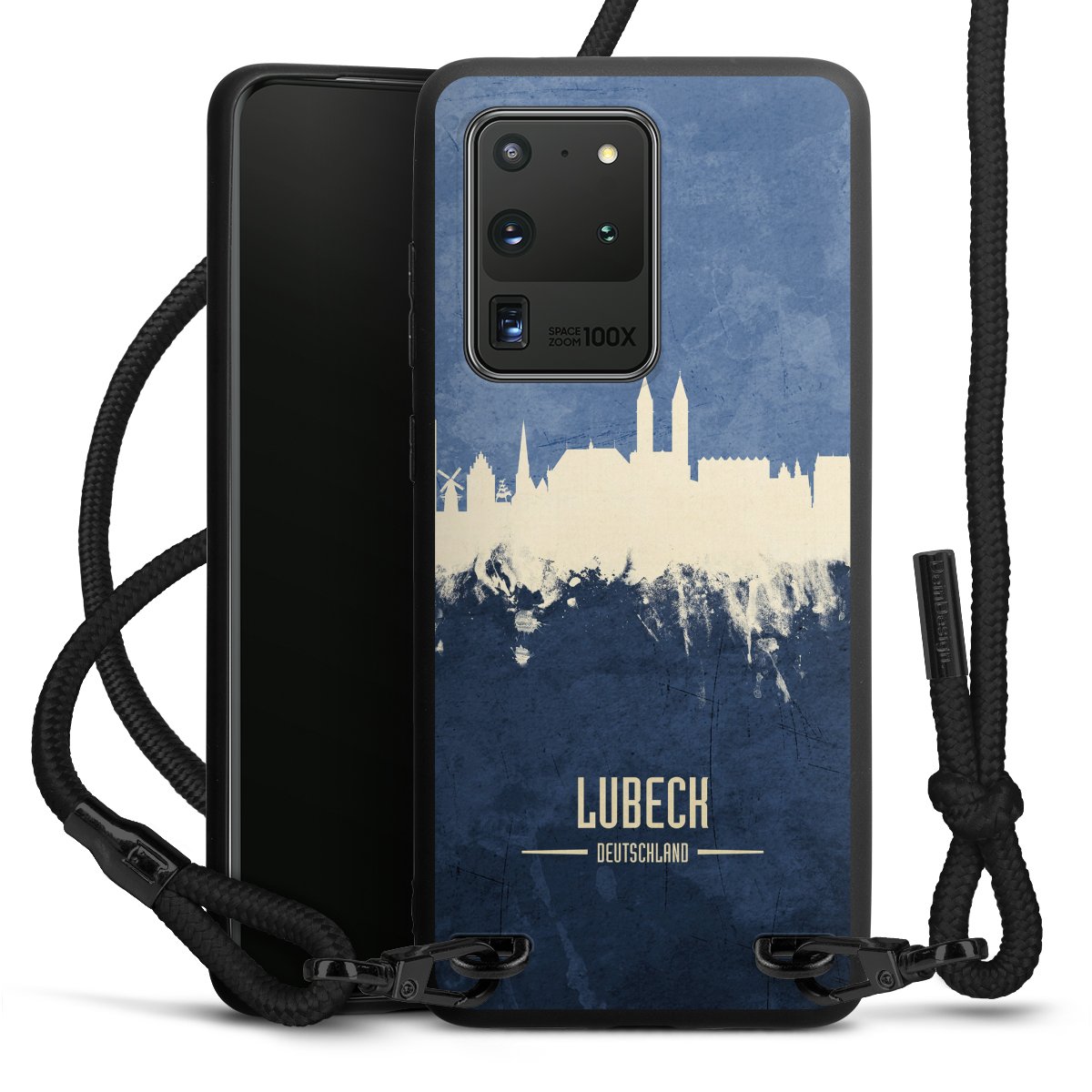 We use the solid direct print process for this phone case, which is why the print area only covers the back and the edge remains unprinted. The case to wear around your neck can be ordered unprinted, fully printed, or partially printed. For your design, either choose one of our exclusive shop motifs or get creative and create your own design, for example with photos and overlays. Design your own personal trend accessory and make an individual statement on the streets!