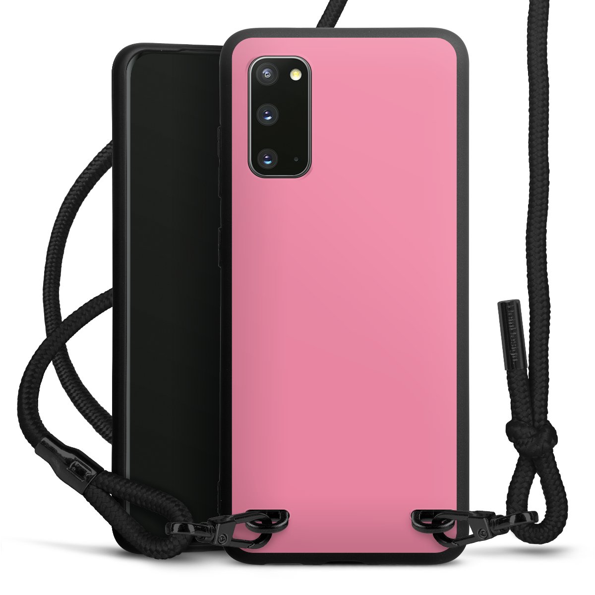 The matt black silicone case is made of flexible TPU (thermoplastic polyurethane) and offers robust protection. The durable, unbreakable material makes the cover flexible and dimensionally stable at the same time. The matte surface makes your design stand out more and is less susceptible to fingerprints and dirt. The stylish trend accessory fits comfortably in the hand and is perfectly complemented by the fabric (polyester) mobile phone strap. The braided fabric strap is approx. 1.70 metres long with a diameter of approx. 0.5 cm. Due to the special knotting technique, the length of the strap can be adjusted by simply pulling it, so that you can adapt it individually to your wishes. The practical case to wear around your neck is available with the fabric strap in black. As a little icing on the cake, we have provided the strap with a chic metal fastener in matt black. The strap is securely fastened to the case with loops made of high-quality genuine leather and press studs. The ends of the fabric strap are covered with metallic end caps and thus protected from fraying.