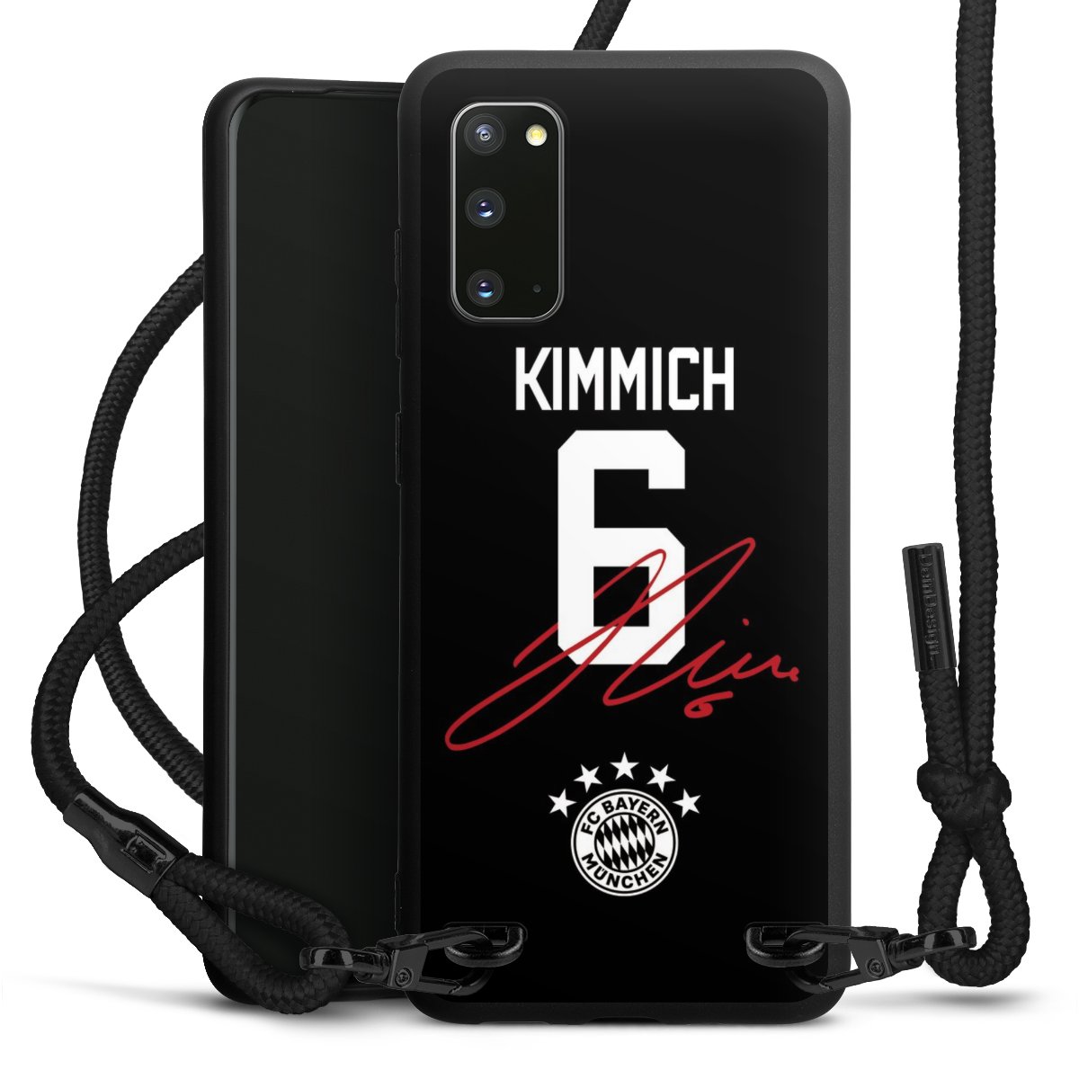 The matt black silicone case is made of flexible TPU (thermoplastic polyurethane) and offers robust protection. The durable, unbreakable material makes the cover flexible and dimensionally stable at the same time. The matte surface makes your design stand out more and is less susceptible to fingerprints and dirt. The stylish trend accessory fits comfortably in the hand and is perfectly complemented by the fabric (polyester) mobile phone strap. The braided fabric strap is approx. 1.70 metres long with a diameter of approx. 0.5 cm. Due to the special knotting technique, the length of the strap can be adjusted by simply pulling it, so that you can adapt it individually to your wishes. The practical case to wear around your neck is available with the fabric strap in black. As a little icing on the cake, we have provided the strap with a chic metal fastener in matt black. The strap is securely fastened to the case with loops made of high-quality genuine leather and press studs. The ends of the fabric strap are covered with metallic end caps and thus protected from fraying.