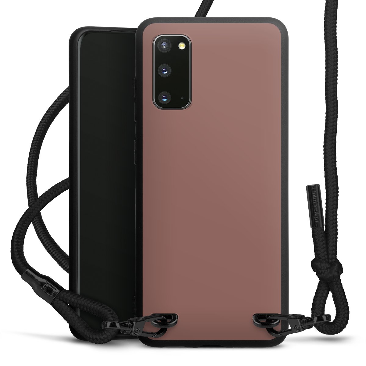 The matt black silicone case is made of flexible TPU (thermoplastic polyurethane) and offers robust protection. The durable, unbreakable material makes the cover flexible and dimensionally stable at the same time. The matte surface makes your design stand out more and is less susceptible to fingerprints and dirt. The stylish trend accessory fits comfortably in the hand and is perfectly complemented by the fabric (polyester) mobile phone strap. The braided fabric strap is approx. 1.70 metres long with a diameter of approx. 0.5 cm. Due to the special knotting technique, the length of the strap can be adjusted by simply pulling it, so that you can adapt it individually to your wishes. The practical case to wear around your neck is available with the fabric strap in black. As a little icing on the cake, we have provided the strap with a chic metal fastener in matt black. The strap is securely fastened to the case with loops made of high-quality genuine leather and press studs. The ends of the fabric strap are covered with metallic end caps and thus protected from fraying.