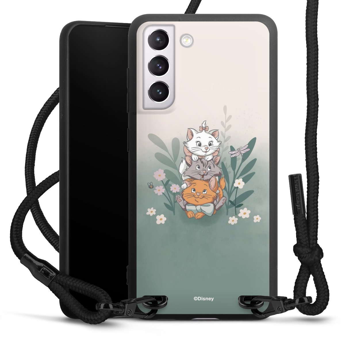 The matt black silicone case is made of flexible TPU (thermoplastic polyurethane) and offers robust protection. The durable, unbreakable material makes the cover flexible and dimensionally stable at the same time. The matte surface makes your design stand out more and is less susceptible to fingerprints and dirt. The stylish trend accessory fits comfortably in the hand and is perfectly complemented by the fabric (polyester) mobile phone strap. The braided fabric strap is approx. 1.70 metres long with a diameter of approx. 0.5 cm. Due to the special knotting technique, the length of the strap can be adjusted by simply pulling it, so that you can adapt it individually to your wishes. The practical case to wear around your neck is available with the fabric strap in black. As a little icing on the cake, we have provided the strap with a chic metal fastener in matt black. The strap is securely fastened to the case with loops made of high-quality genuine leather and press studs. The ends of the fabric strap are covered with metallic end caps and thus protected from fraying.