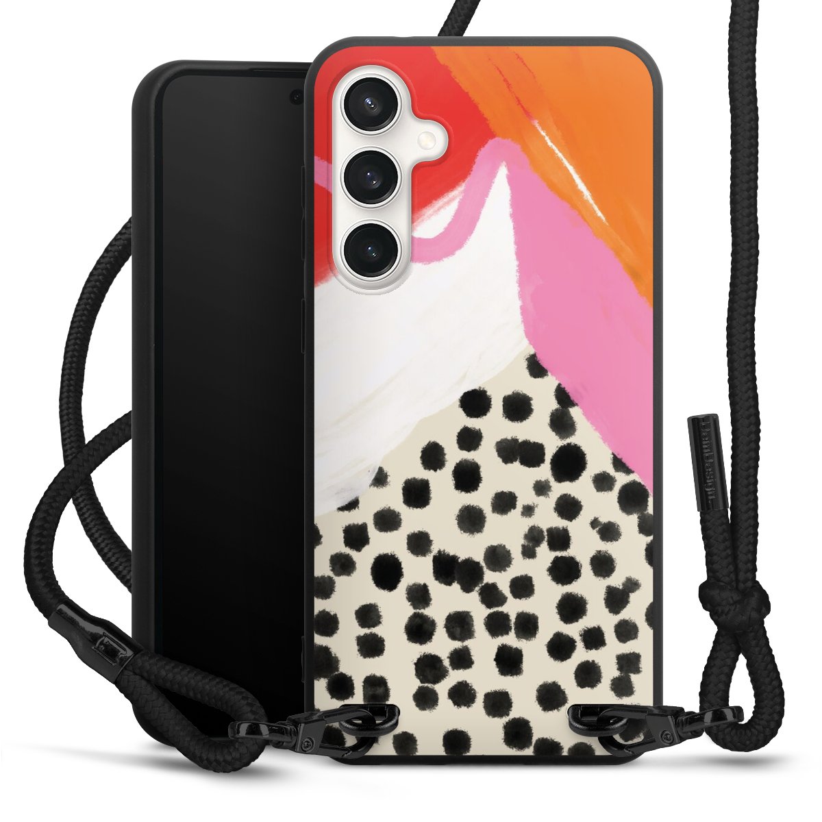 We use the solid direct print process for this phone case, which is why the print area only covers the back and the edge remains unprinted. The case to wear around your neck can be ordered unprinted, fully printed, or partially printed. For your design, either choose one of our exclusive shop motifs or get creative and create your own design, for example with photos and overlays. Design your own personal trend accessory and make an individual statement on the streets!