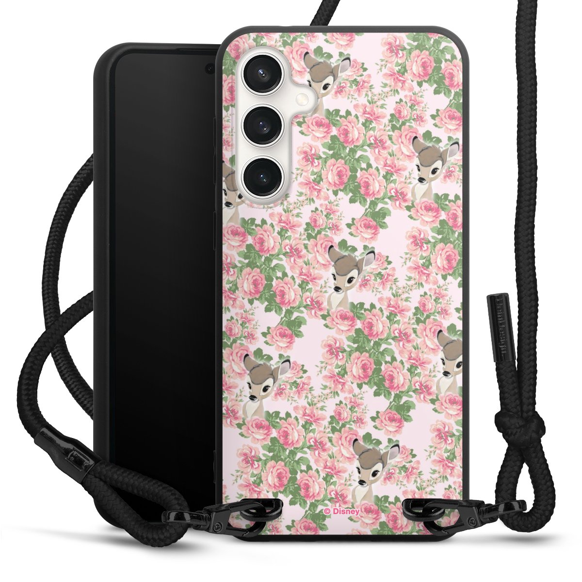 The matt black silicone case is made of flexible TPU (thermoplastic polyurethane) and offers robust protection. The durable, unbreakable material makes the cover flexible and dimensionally stable at the same time. The matte surface makes your design stand out more and is less susceptible to fingerprints and dirt. The stylish trend accessory fits comfortably in the hand and is perfectly complemented by the fabric (polyester) mobile phone strap. The braided fabric strap is approx. 1.70 metres long with a diameter of approx. 0.5 cm. Due to the special knotting technique, the length of the strap can be adjusted by simply pulling it, so that you can adapt it individually to your wishes. The practical case to wear around your neck is available with the fabric strap in black. As a little icing on the cake, we have provided the strap with a chic metal fastener in matt black. The strap is securely fastened to the case with loops made of high-quality genuine leather and press studs. The ends of the fabric strap are covered with metallic end caps and thus protected from fraying.