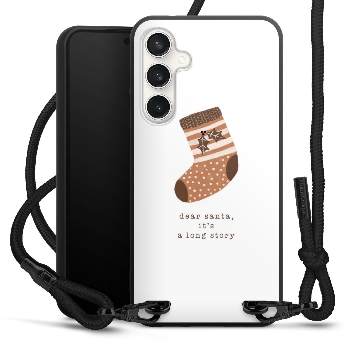 We use the solid direct print process for this phone case, which is why the print area only covers the back and the edge remains unprinted. The case to wear around your neck can be ordered unprinted, fully printed, or partially printed. For your design, either choose one of our exclusive shop motifs or get creative and create your own design, for example with photos and overlays. Design your own personal trend accessory and make an individual statement on the streets!