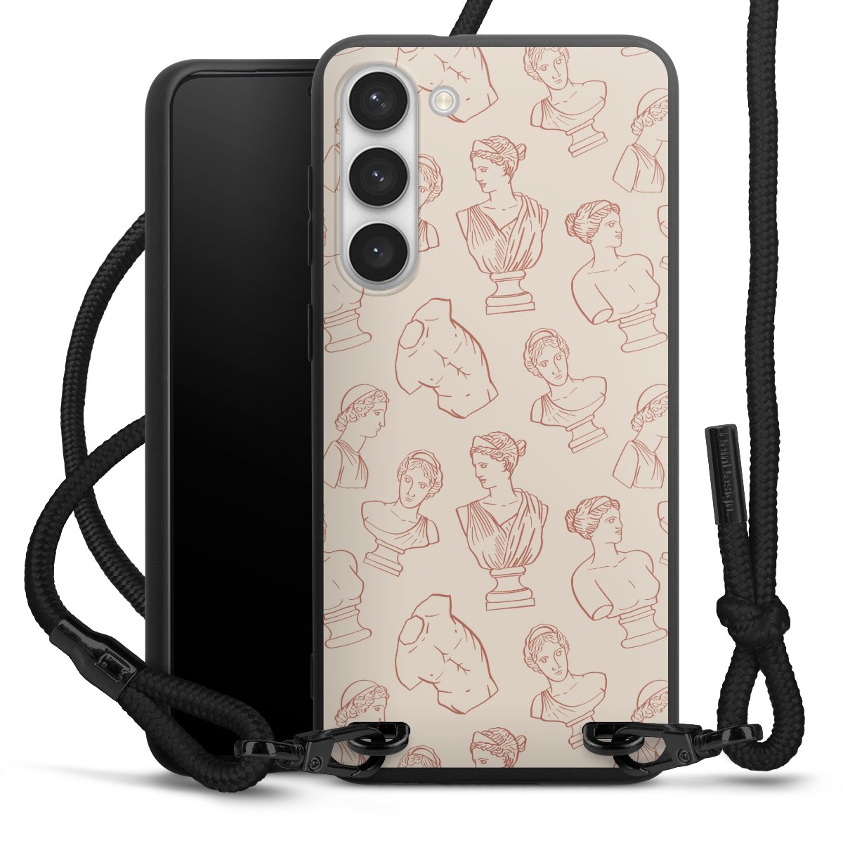 We use the solid direct print process for this phone case, which is why the print area only covers the back and the edge remains unprinted. The case to wear around your neck can be ordered unprinted, fully printed, or partially printed. For your design, either choose one of our exclusive shop motifs or get creative and create your own design, for example with photos and overlays. Design your own personal trend accessory and make an individual statement on the streets!