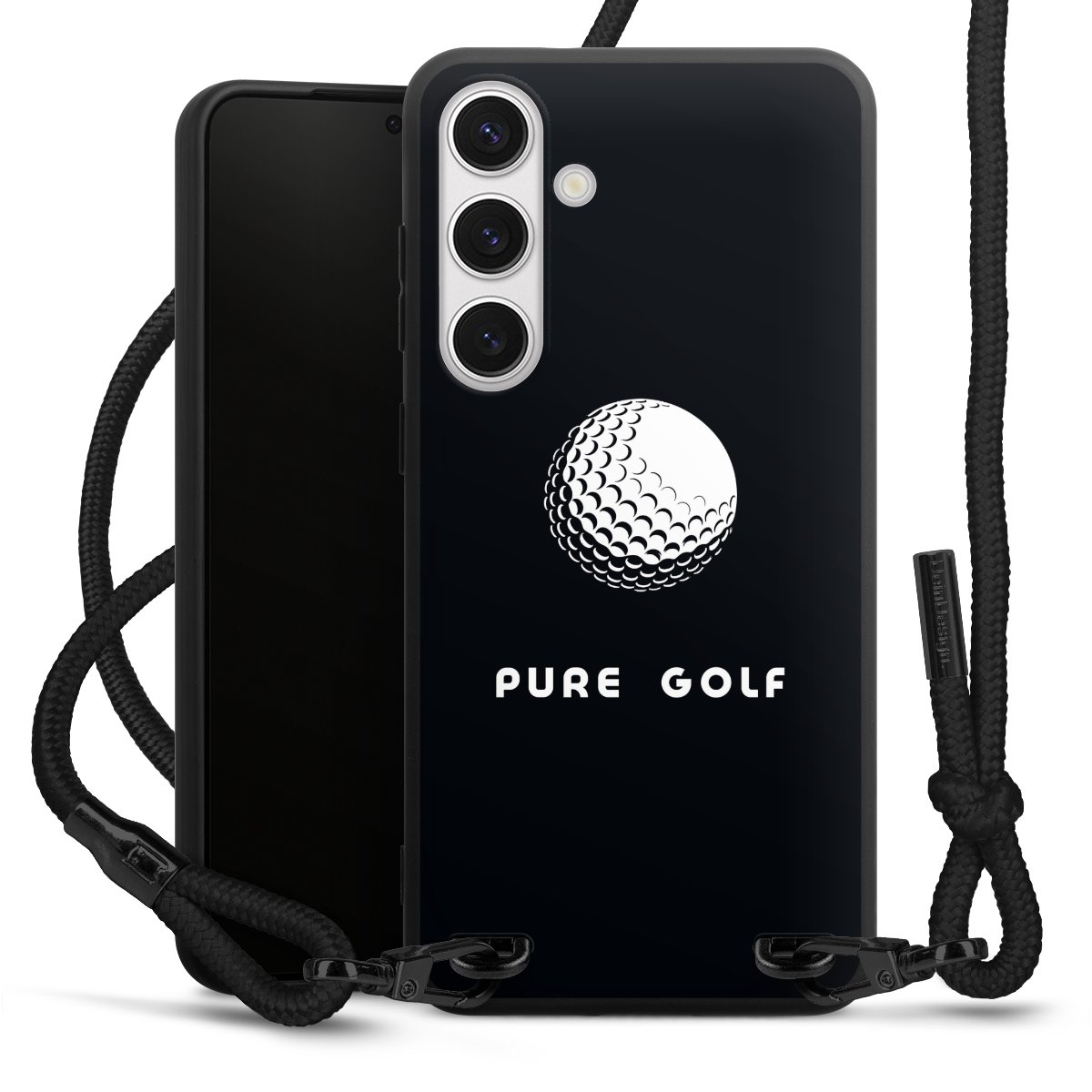 Pure Black: Phone case, fabric strap and metal details in stylish matt black.