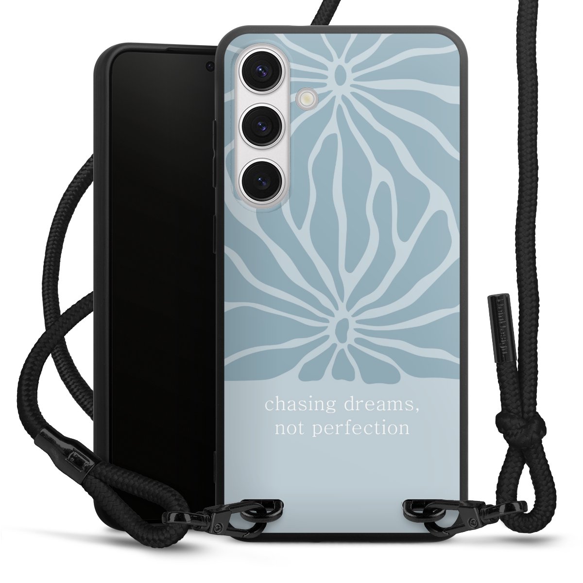 We use the solid direct print process for this phone case, which is why the print area only covers the back and the edge remains unprinted. The case to wear around your neck can be ordered unprinted, fully printed, or partially printed. For your design, either choose one of our exclusive shop motifs or get creative and create your own design, for example with photos and overlays. Design your own personal trend accessory and make an individual statement on the streets!