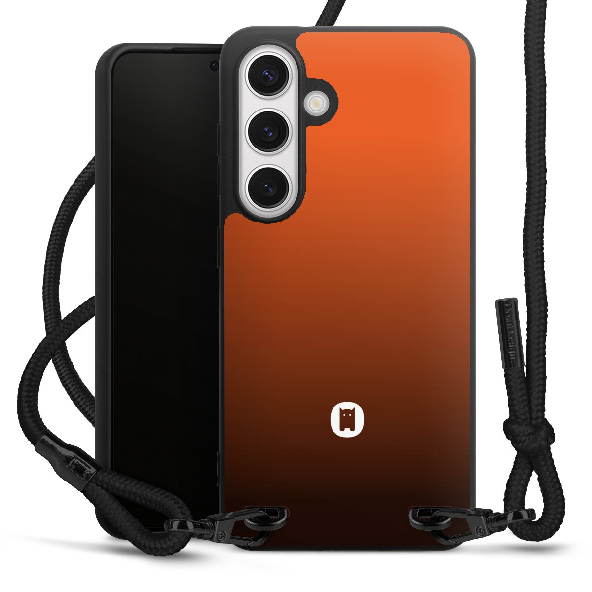 The matt black silicone case is made of flexible TPU (thermoplastic polyurethane) and offers robust protection. The durable, unbreakable material makes the cover flexible and dimensionally stable at the same time. The matte surface makes your design stand out more and is less susceptible to fingerprints and dirt. The stylish trend accessory fits comfortably in the hand and is perfectly complemented by the fabric (polyester) mobile phone strap. The braided fabric strap is approx. 1.70 metres long with a diameter of approx. 0.5 cm. Due to the special knotting technique, the length of the strap can be adjusted by simply pulling it, so that you can adapt it individually to your wishes. The practical case to wear around your neck is available with the fabric strap in black. As a little icing on the cake, we have provided the strap with a chic metal fastener in matt black. The strap is securely fastened to the case with loops made of high-quality genuine leather and press studs. The ends of the fabric strap are covered with metallic end caps and thus protected from fraying.