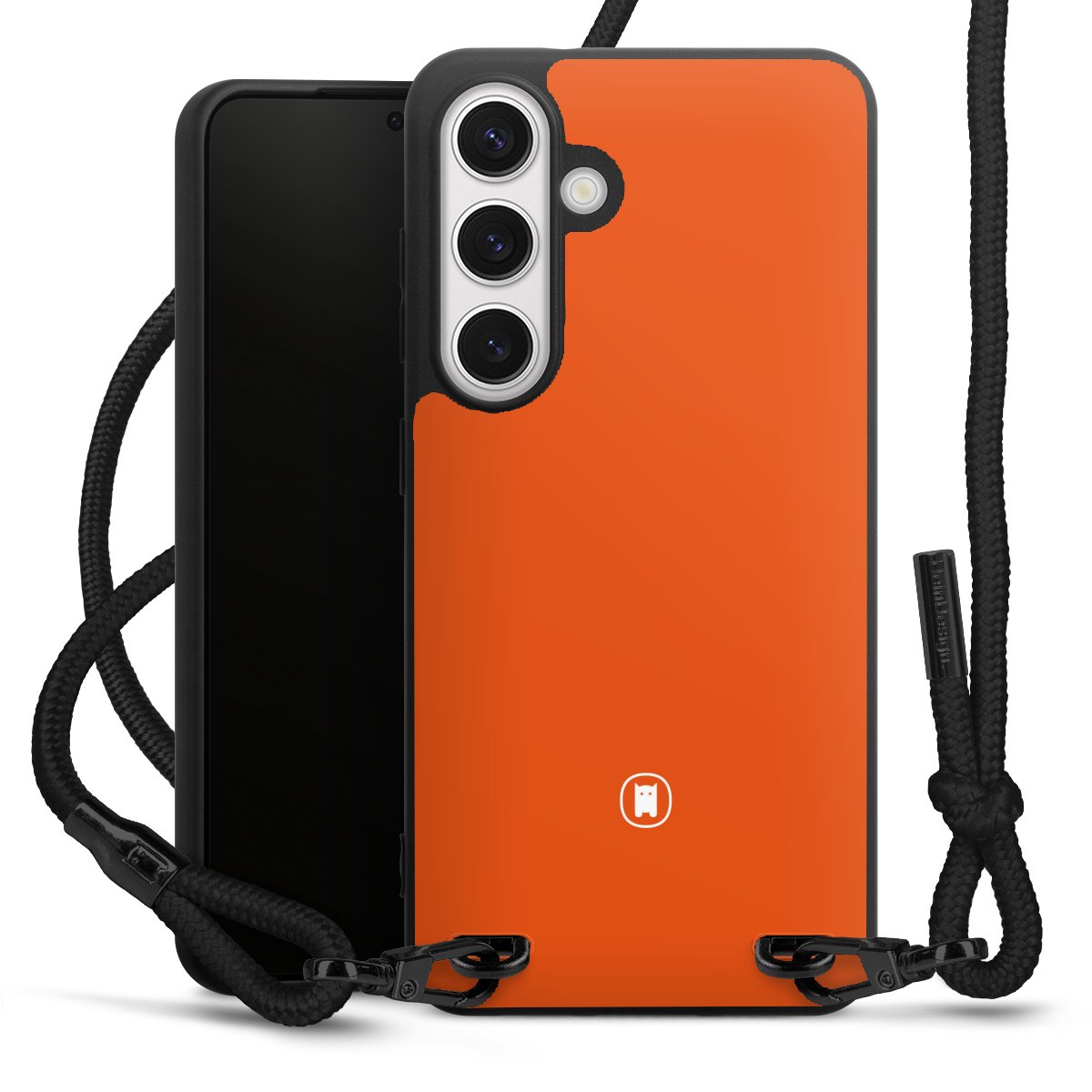 The matt black silicone case is made of flexible TPU (thermoplastic polyurethane) and offers robust protection. The durable, unbreakable material makes the cover flexible and dimensionally stable at the same time. The matte surface makes your design stand out more and is less susceptible to fingerprints and dirt. The stylish trend accessory fits comfortably in the hand and is perfectly complemented by the fabric (polyester) mobile phone strap. The braided fabric strap is approx. 1.70 metres long with a diameter of approx. 0.5 cm. Due to the special knotting technique, the length of the strap can be adjusted by simply pulling it, so that you can adapt it individually to your wishes. The practical case to wear around your neck is available with the fabric strap in black. As a little icing on the cake, we have provided the strap with a chic metal fastener in matt black. The strap is securely fastened to the case with loops made of high-quality genuine leather and press studs. The ends of the fabric strap are covered with metallic end caps and thus protected from fraying.