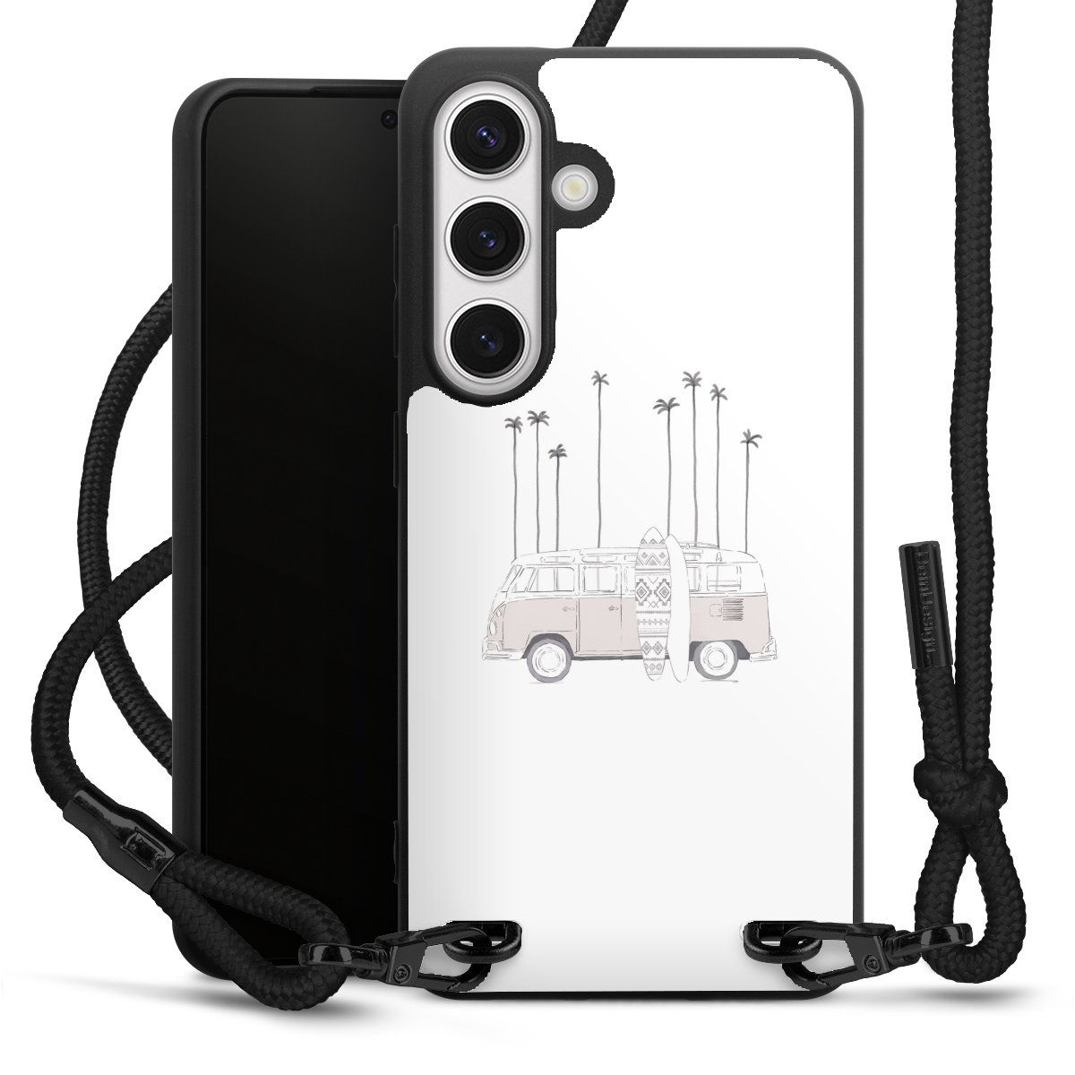 We use the solid direct print process for this phone case, which is why the print area only covers the back and the edge remains unprinted. The case to wear around your neck can be ordered unprinted, fully printed, or partially printed. For your design, either choose one of our exclusive shop motifs or get creative and create your own design, for example with photos and overlays. Design your own personal trend accessory and make an individual statement on the streets!