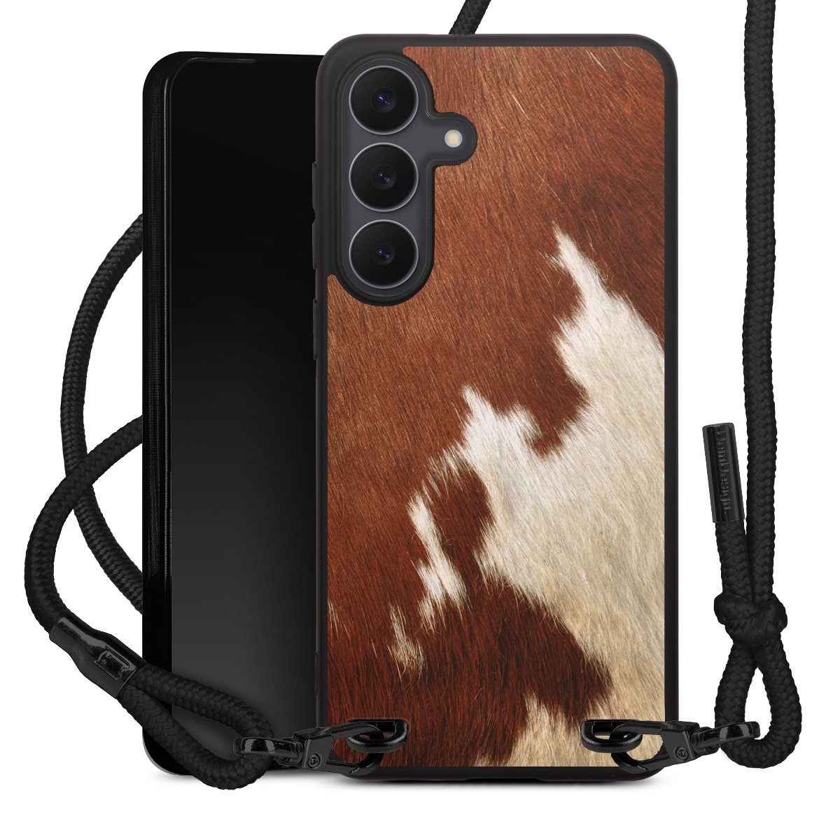 We use the solid direct print process for this phone case, which is why the print area only covers the back and the edge remains unprinted. The case to wear around your neck can be ordered unprinted, fully printed, or partially printed. For your design, either choose one of our exclusive shop motifs or get creative and create your own design, for example with photos and overlays. Design your own personal trend accessory and make an individual statement on the streets!
