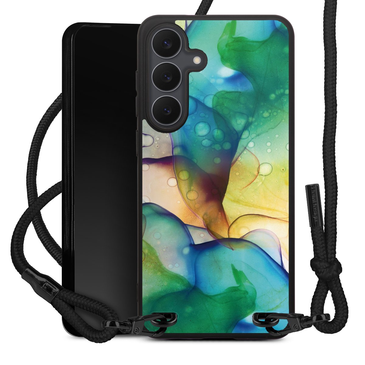 We use the solid direct print process for this phone case, which is why the print area only covers the back and the edge remains unprinted. The case to wear around your neck can be ordered unprinted, fully printed, or partially printed. For your design, either choose one of our exclusive shop motifs or get creative and create your own design, for example with photos and overlays. Design your own personal trend accessory and make an individual statement on the streets!