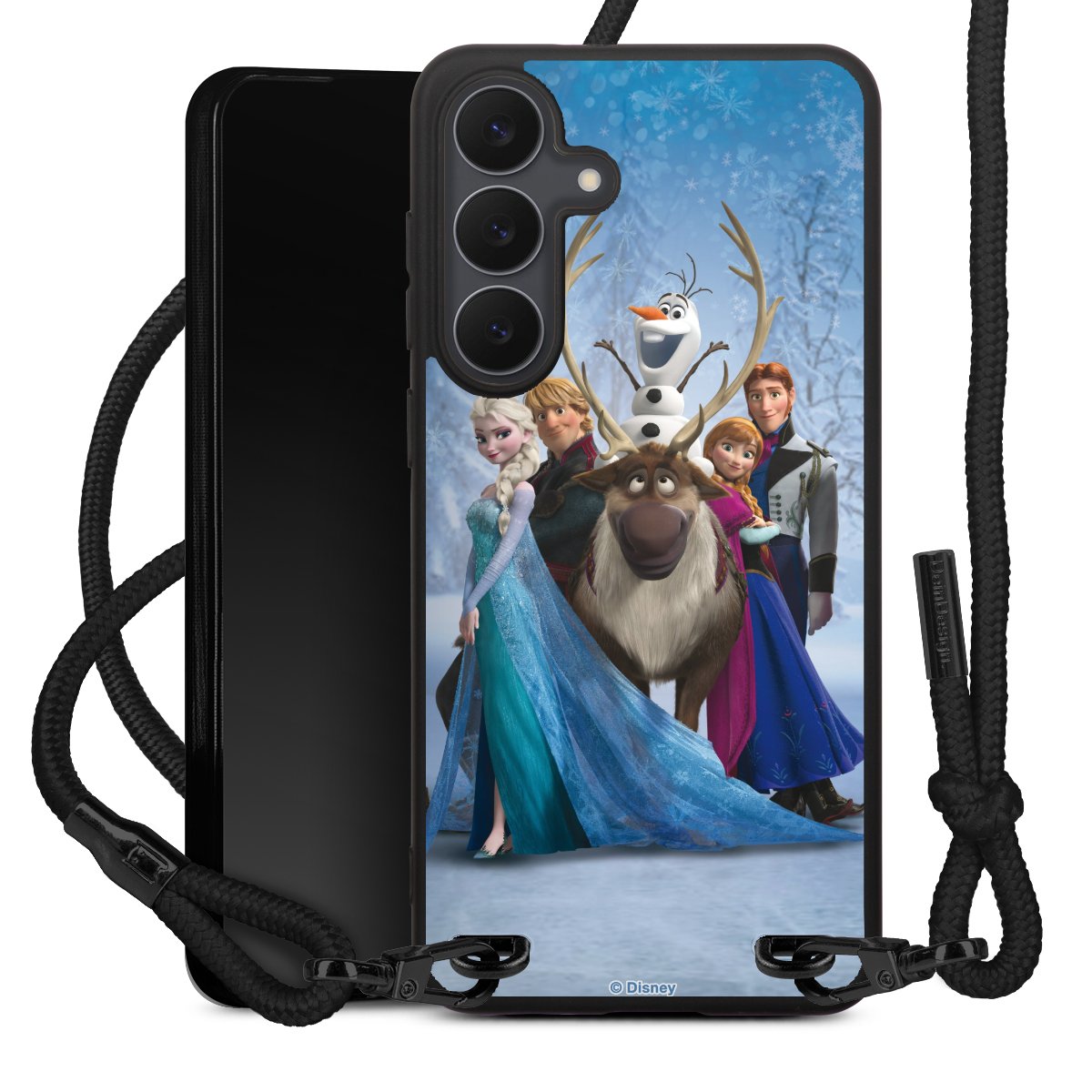 The matt black silicone case is made of flexible TPU (thermoplastic polyurethane) and offers robust protection. The durable, unbreakable material makes the cover flexible and dimensionally stable at the same time. The matte surface makes your design stand out more and is less susceptible to fingerprints and dirt. The stylish trend accessory fits comfortably in the hand and is perfectly complemented by the fabric (polyester) mobile phone strap. The braided fabric strap is approx. 1.70 metres long with a diameter of approx. 0.5 cm. Due to the special knotting technique, the length of the strap can be adjusted by simply pulling it, so that you can adapt it individually to your wishes. The practical case to wear around your neck is available with the fabric strap in black. As a little icing on the cake, we have provided the strap with a chic metal fastener in matt black. The strap is securely fastened to the case with loops made of high-quality genuine leather and press studs. The ends of the fabric strap are covered with metallic end caps and thus protected from fraying.