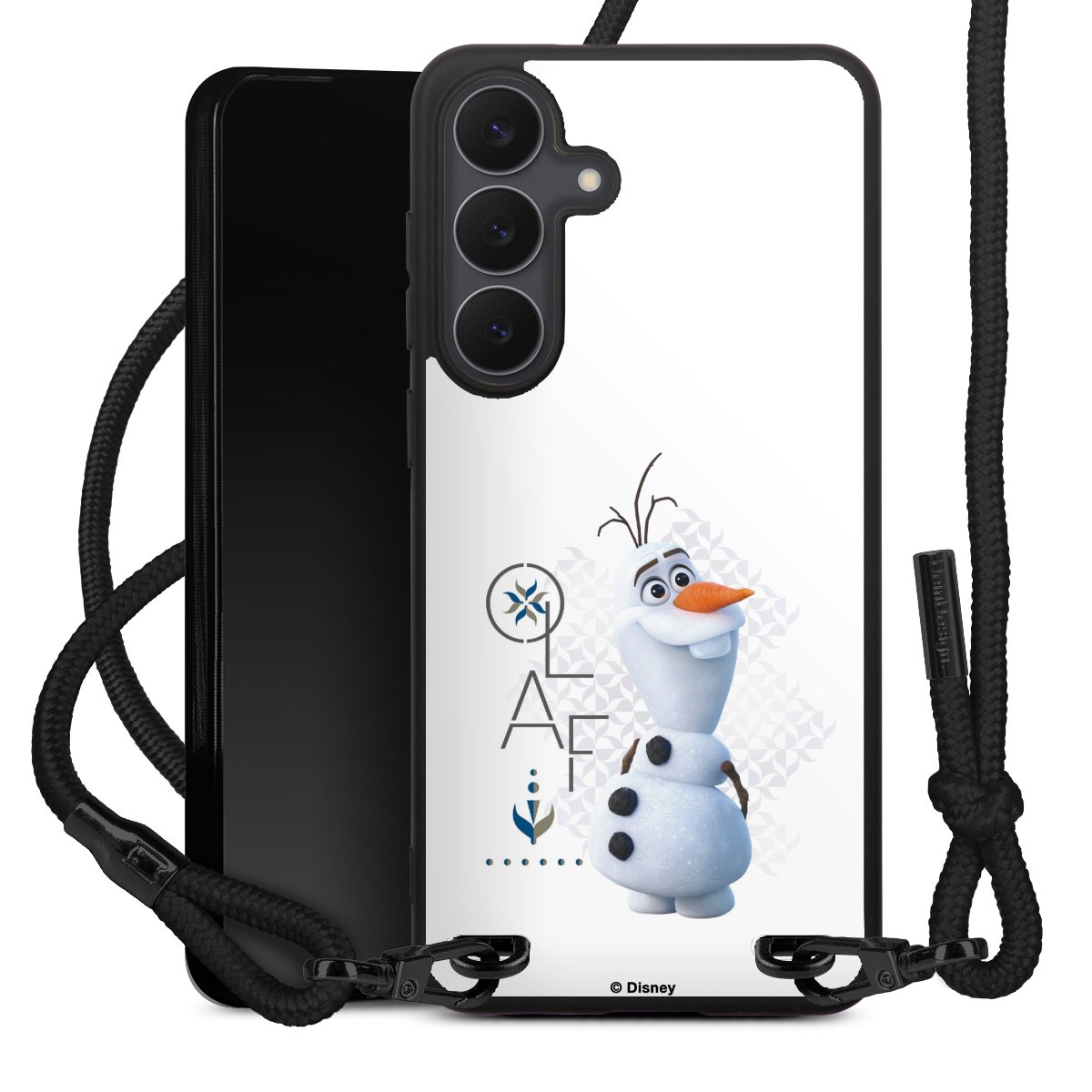 The matt black silicone case is made of flexible TPU (thermoplastic polyurethane) and offers robust protection. The durable, unbreakable material makes the cover flexible and dimensionally stable at the same time. The matte surface makes your design stand out more and is less susceptible to fingerprints and dirt. The stylish trend accessory fits comfortably in the hand and is perfectly complemented by the fabric (polyester) mobile phone strap. The braided fabric strap is approx. 1.70 metres long with a diameter of approx. 0.5 cm. Due to the special knotting technique, the length of the strap can be adjusted by simply pulling it, so that you can adapt it individually to your wishes. The practical case to wear around your neck is available with the fabric strap in black. As a little icing on the cake, we have provided the strap with a chic metal fastener in matt black. The strap is securely fastened to the case with loops made of high-quality genuine leather and press studs. The ends of the fabric strap are covered with metallic end caps and thus protected from fraying.