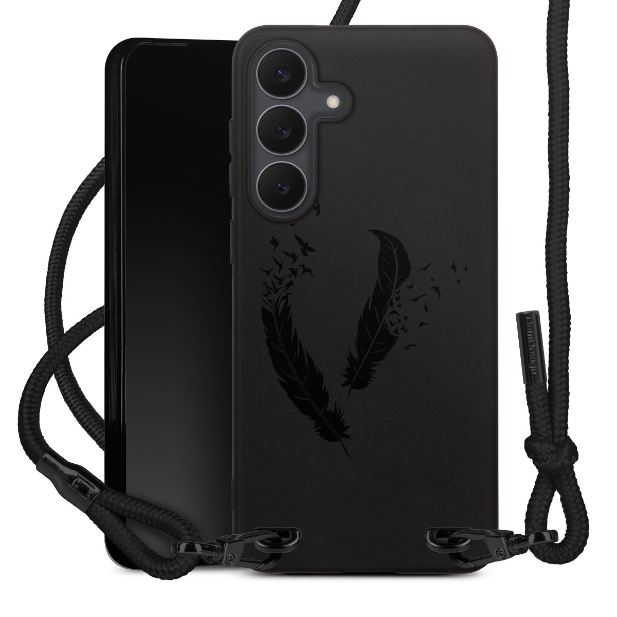 Pure Black: Phone case, fabric strap and metal details in stylish matt black.