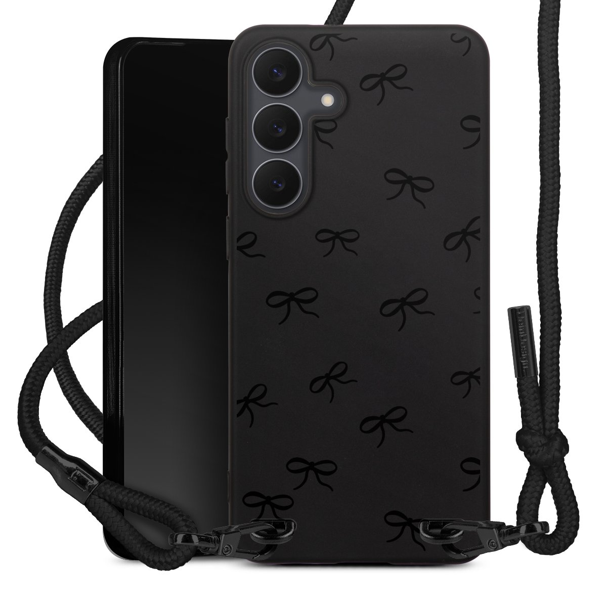 Pure Black: Phone case, fabric strap and metal details in stylish matt black.