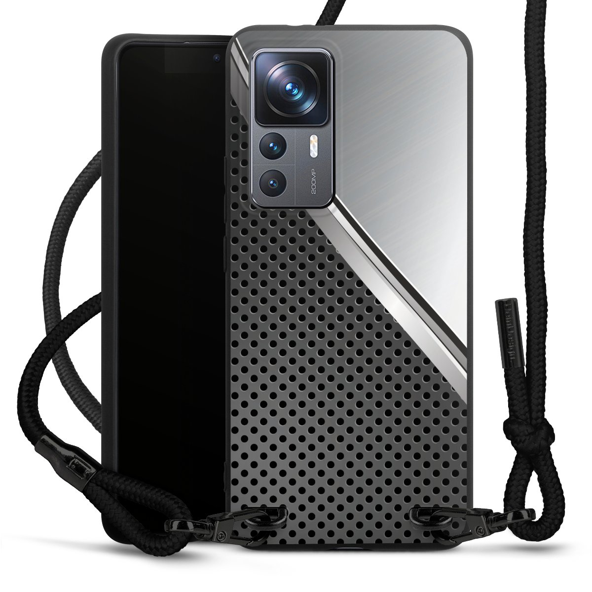 Pure Black: Phone case, fabric strap and metal details in stylish matt black.