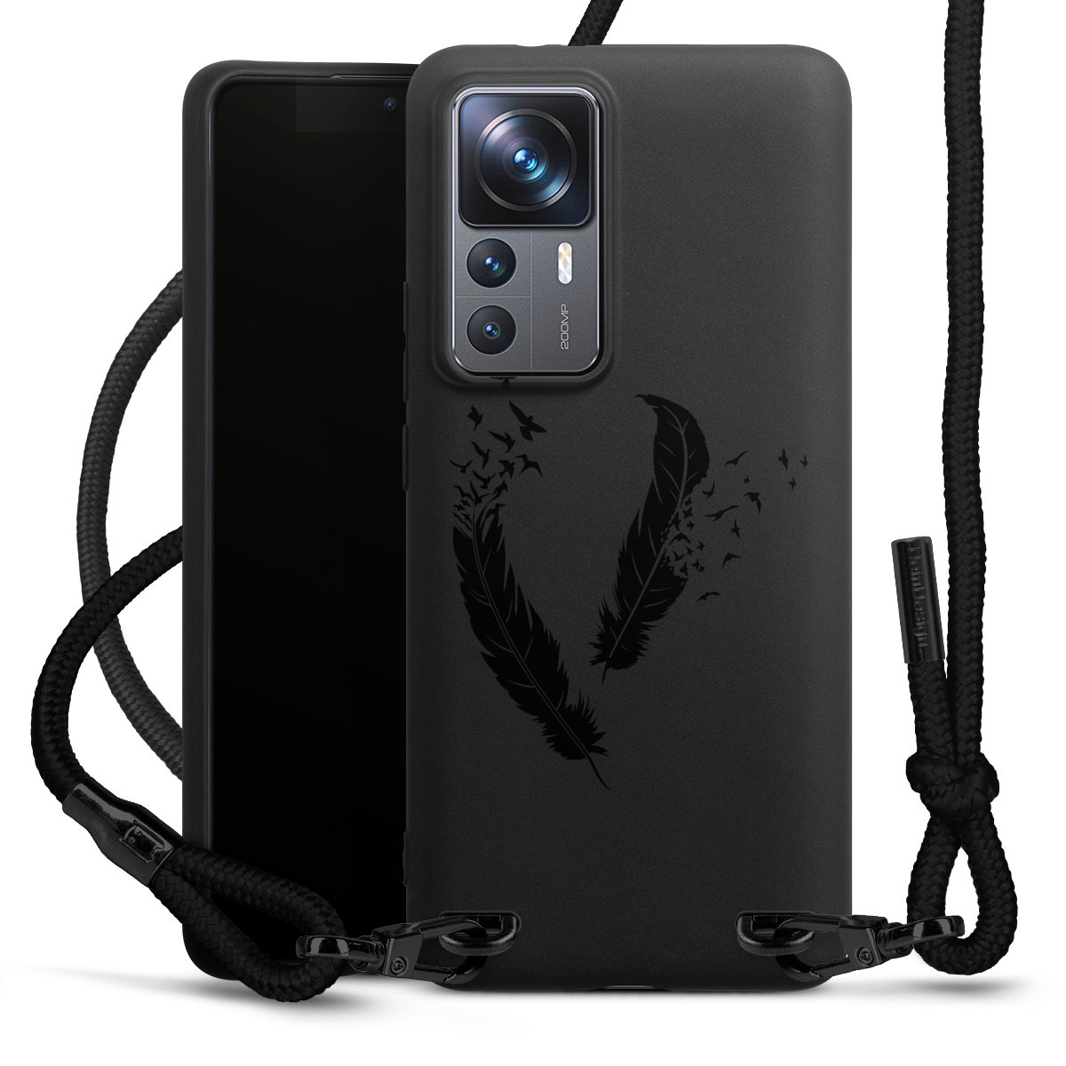 Pure Black: Phone case, fabric strap and metal details in stylish matt black.
