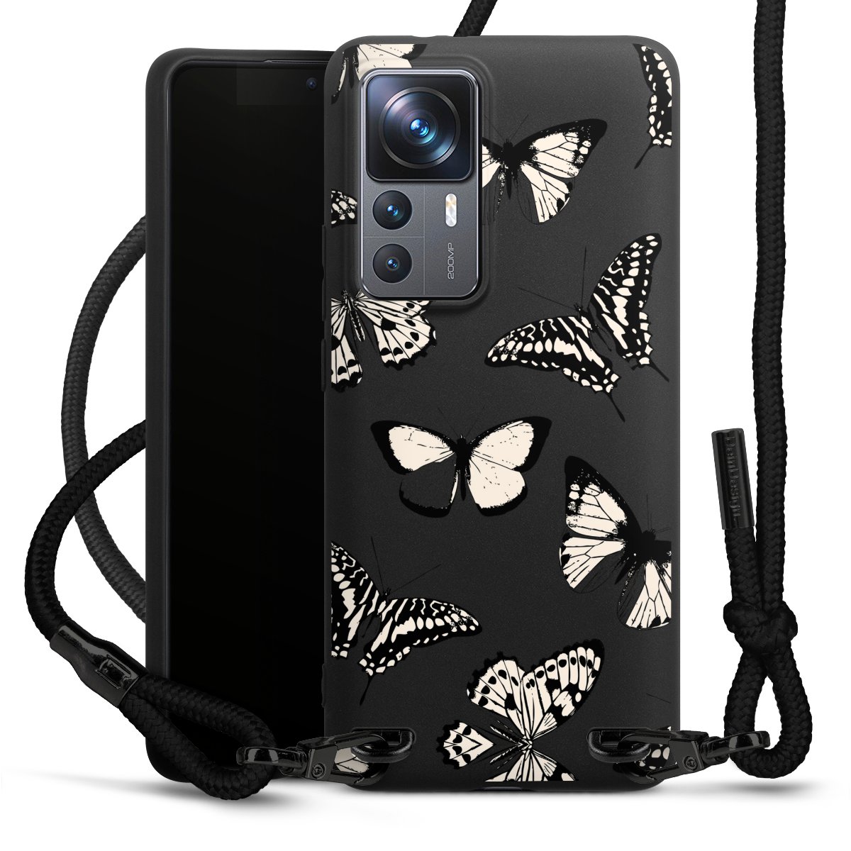 Pure Black: Phone case, fabric strap and metal details in stylish matt black.