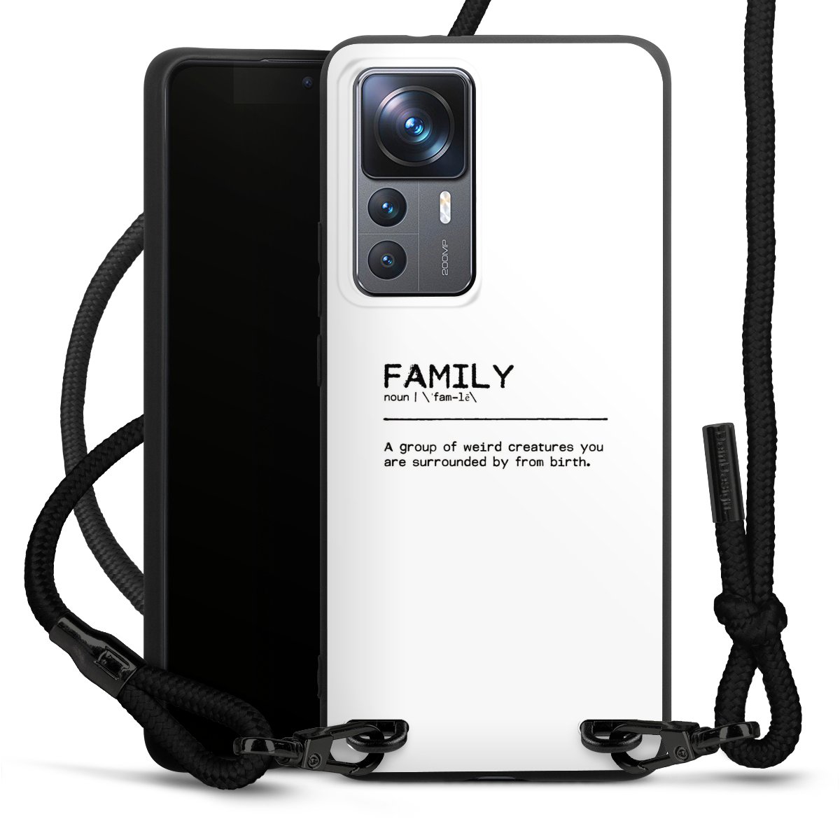 The matt black silicone case is made of flexible TPU (thermoplastic polyurethane) and offers robust protection. The durable, unbreakable material makes the cover flexible and dimensionally stable at the same time. The matte surface makes your design stand out more and is less susceptible to fingerprints and dirt. The stylish trend accessory fits comfortably in the hand and is perfectly complemented by the fabric (polyester) mobile phone strap. The braided fabric strap is approx. 1.70 metres long with a diameter of approx. 0.5 cm. Due to the special knotting technique, the length of the strap can be adjusted by simply pulling it, so that you can adapt it individually to your wishes. The practical case to wear around your neck is available with the fabric strap in black. As a little icing on the cake, we have provided the strap with a chic metal fastener in matt black. The strap is securely fastened to the case with loops made of high-quality genuine leather and press studs. The ends of the fabric strap are covered with metallic end caps and thus protected from fraying.