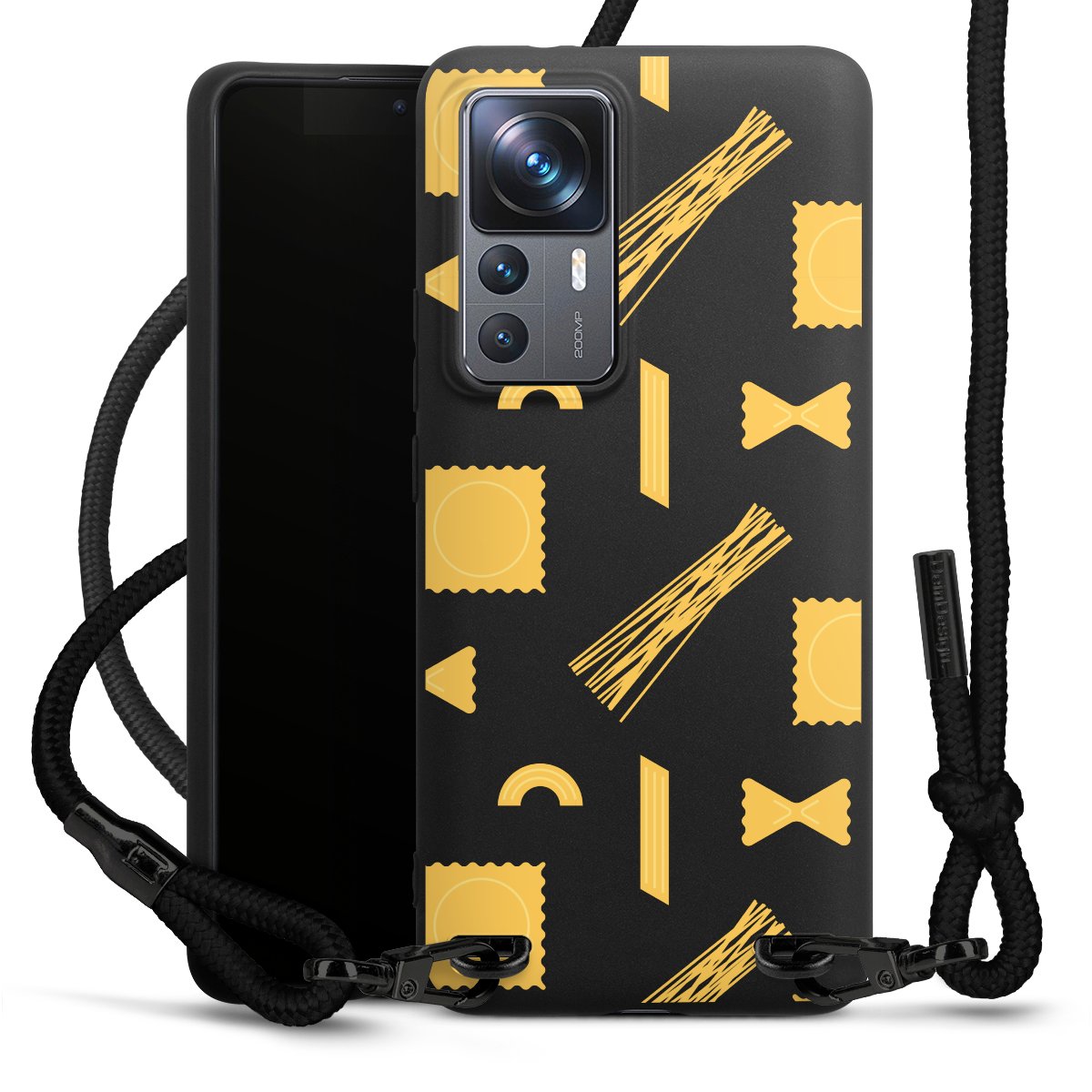 Pure Black: Phone case, fabric strap and metal details in stylish matt black.