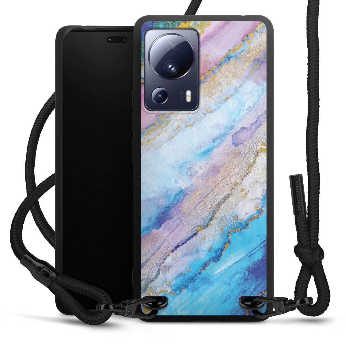 We use the solid direct print process for this phone case, which is why the print area only covers the back and the edge remains unprinted. The case to wear around your neck can be ordered unprinted, fully printed, or partially printed. For your design, either choose one of our exclusive shop motifs or get creative and create your own design, for example with photos and overlays. Design your own personal trend accessory and make an individual statement on the streets!