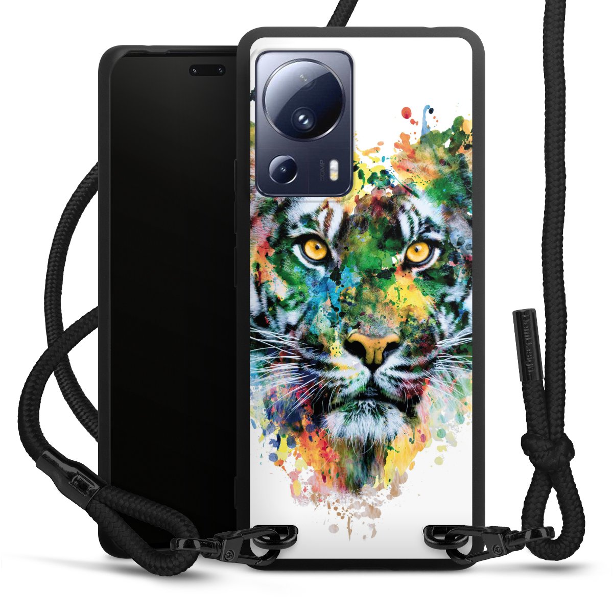 We use the solid direct print process for this phone case, which is why the print area only covers the back and the edge remains unprinted. The case to wear around your neck can be ordered unprinted, fully printed, or partially printed. For your design, either choose one of our exclusive shop motifs or get creative and create your own design, for example with photos and overlays. Design your own personal trend accessory and make an individual statement on the streets!