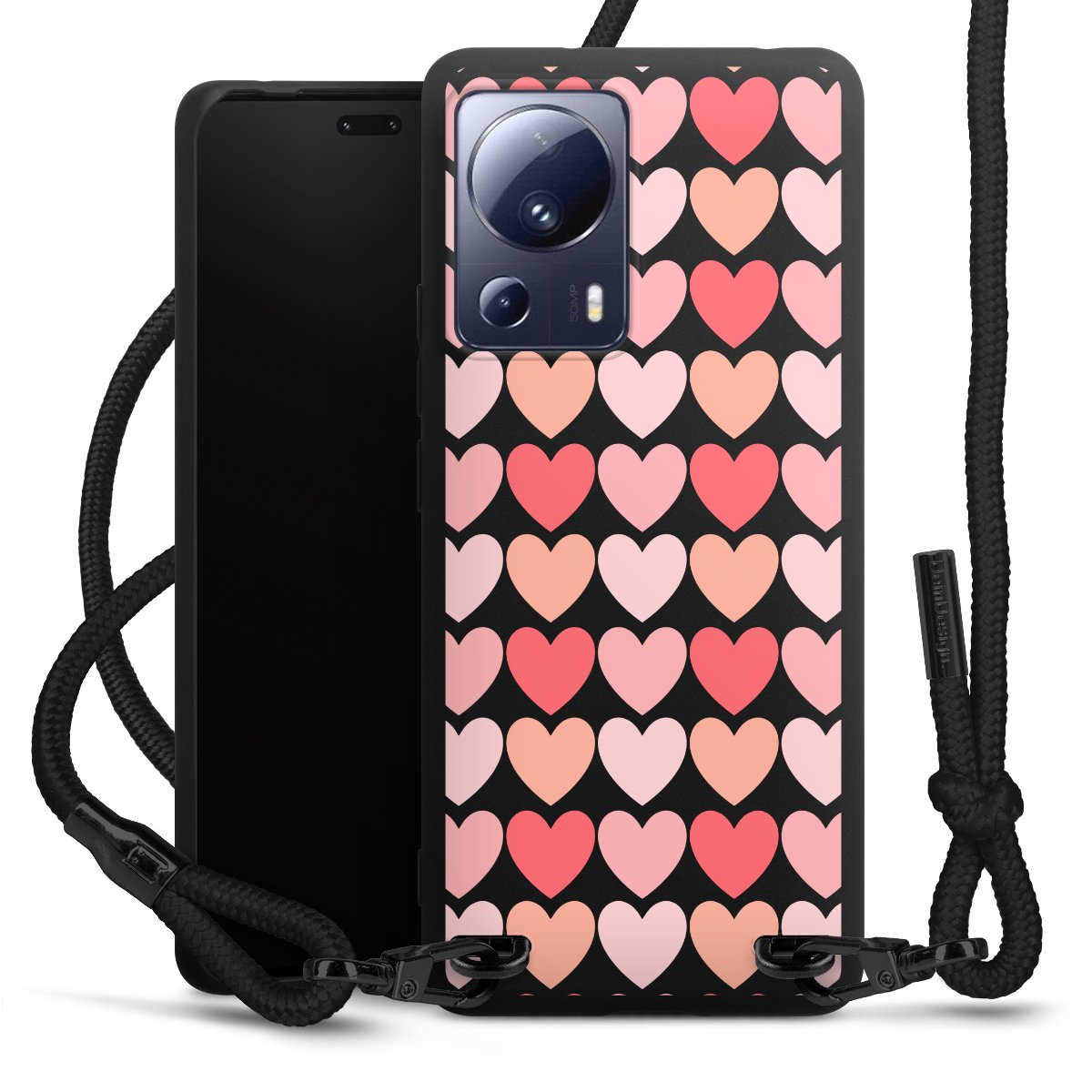 We use the solid direct print process for this phone case, which is why the print area only covers the back and the edge remains unprinted. The case to wear around your neck can be ordered unprinted, fully printed, or partially printed. For your design, either choose one of our exclusive shop motifs or get creative and create your own design, for example with photos and overlays. Design your own personal trend accessory and make an individual statement on the streets!
