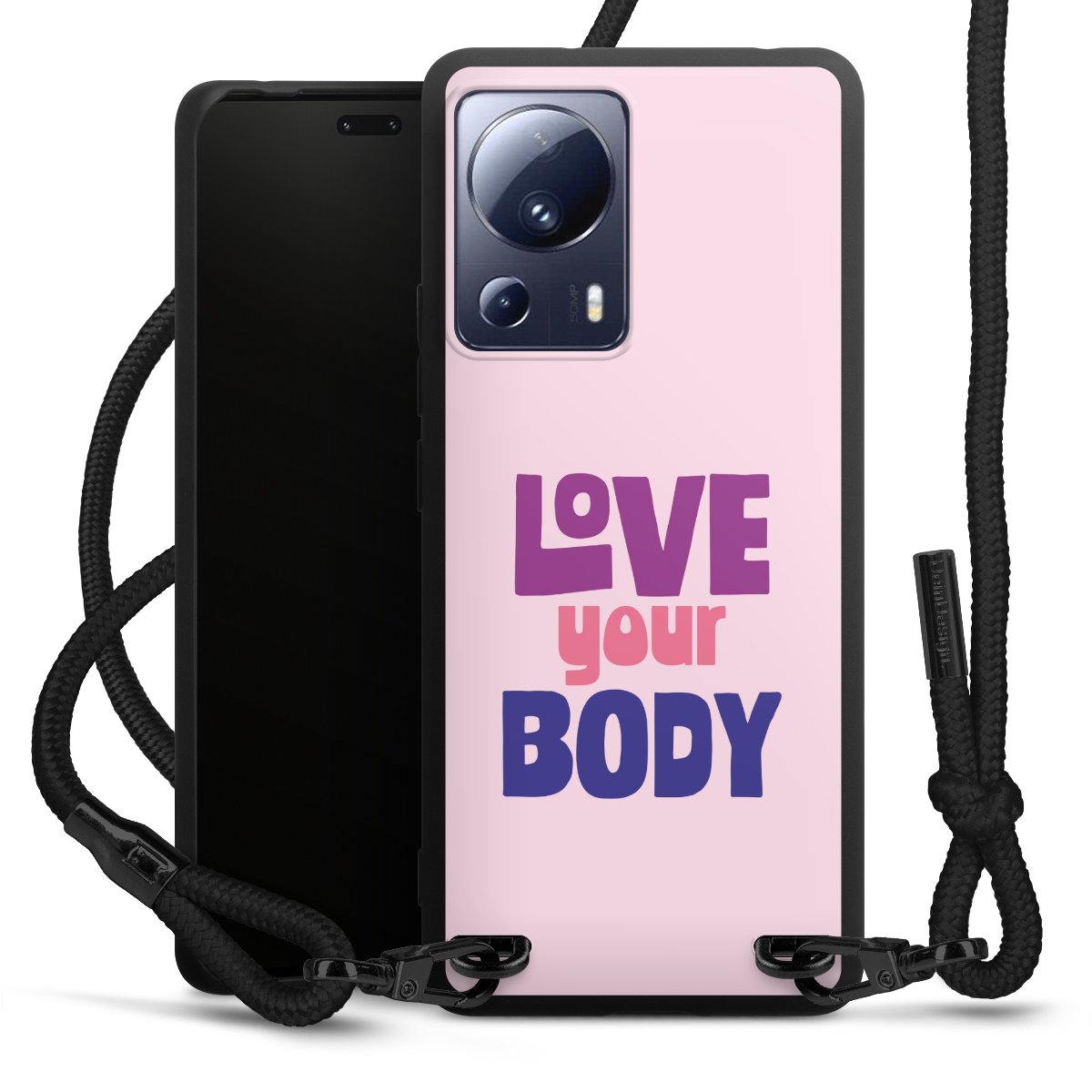 We use the solid direct print process for this phone case, which is why the print area only covers the back and the edge remains unprinted. The case to wear around your neck can be ordered unprinted, fully printed, or partially printed. For your design, either choose one of our exclusive shop motifs or get creative and create your own design, for example with photos and overlays. Design your own personal trend accessory and make an individual statement on the streets!