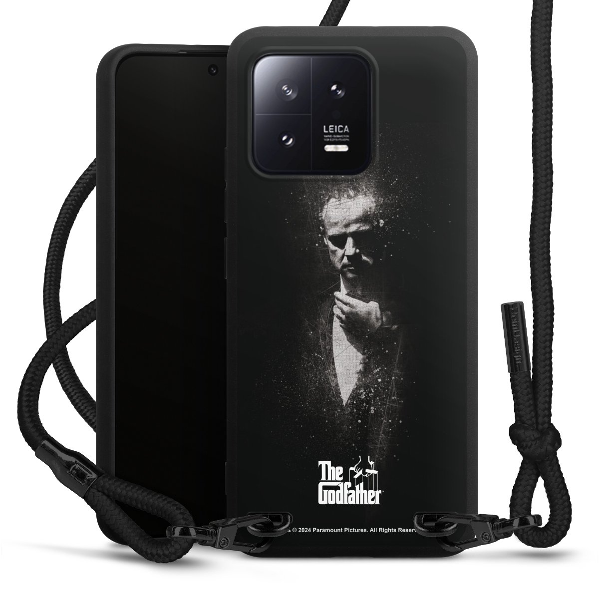 The matt black silicone case is made of flexible TPU (thermoplastic polyurethane) and offers robust protection. The durable, unbreakable material makes the cover flexible and dimensionally stable at the same time. The matte surface makes your design stand out more and is less susceptible to fingerprints and dirt. The stylish trend accessory fits comfortably in the hand and is perfectly complemented by the fabric (polyester) mobile phone strap. The braided fabric strap is approx. 1.70 metres long with a diameter of approx. 0.5 cm. Due to the special knotting technique, the length of the strap can be adjusted by simply pulling it, so that you can adapt it individually to your wishes. The practical case to wear around your neck is available with the fabric strap in black. As a little icing on the cake, we have provided the strap with a chic metal fastener in matt black. The strap is securely fastened to the case with loops made of high-quality genuine leather and press studs. The ends of the fabric strap are covered with metallic end caps and thus protected from fraying.