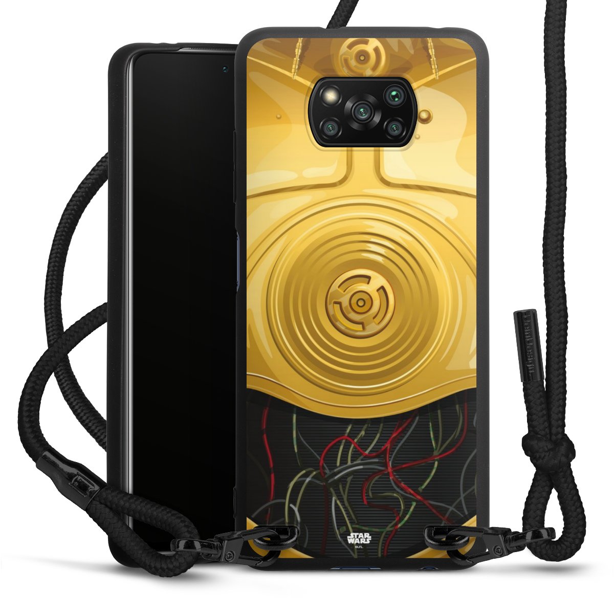 The matt black silicone case is made of flexible TPU (thermoplastic polyurethane) and offers robust protection. The durable, unbreakable material makes the cover flexible and dimensionally stable at the same time. The matte surface makes your design stand out more and is less susceptible to fingerprints and dirt. The stylish trend accessory fits comfortably in the hand and is perfectly complemented by the fabric (polyester) mobile phone strap. The braided fabric strap is approx. 1.70 metres long with a diameter of approx. 0.5 cm. Due to the special knotting technique, the length of the strap can be adjusted by simply pulling it, so that you can adapt it individually to your wishes. The practical case to wear around your neck is available with the fabric strap in black. As a little icing on the cake, we have provided the strap with a chic metal fastener in matt black. The strap is securely fastened to the case with loops made of high-quality genuine leather and press studs. The ends of the fabric strap are covered with metallic end caps and thus protected from fraying.