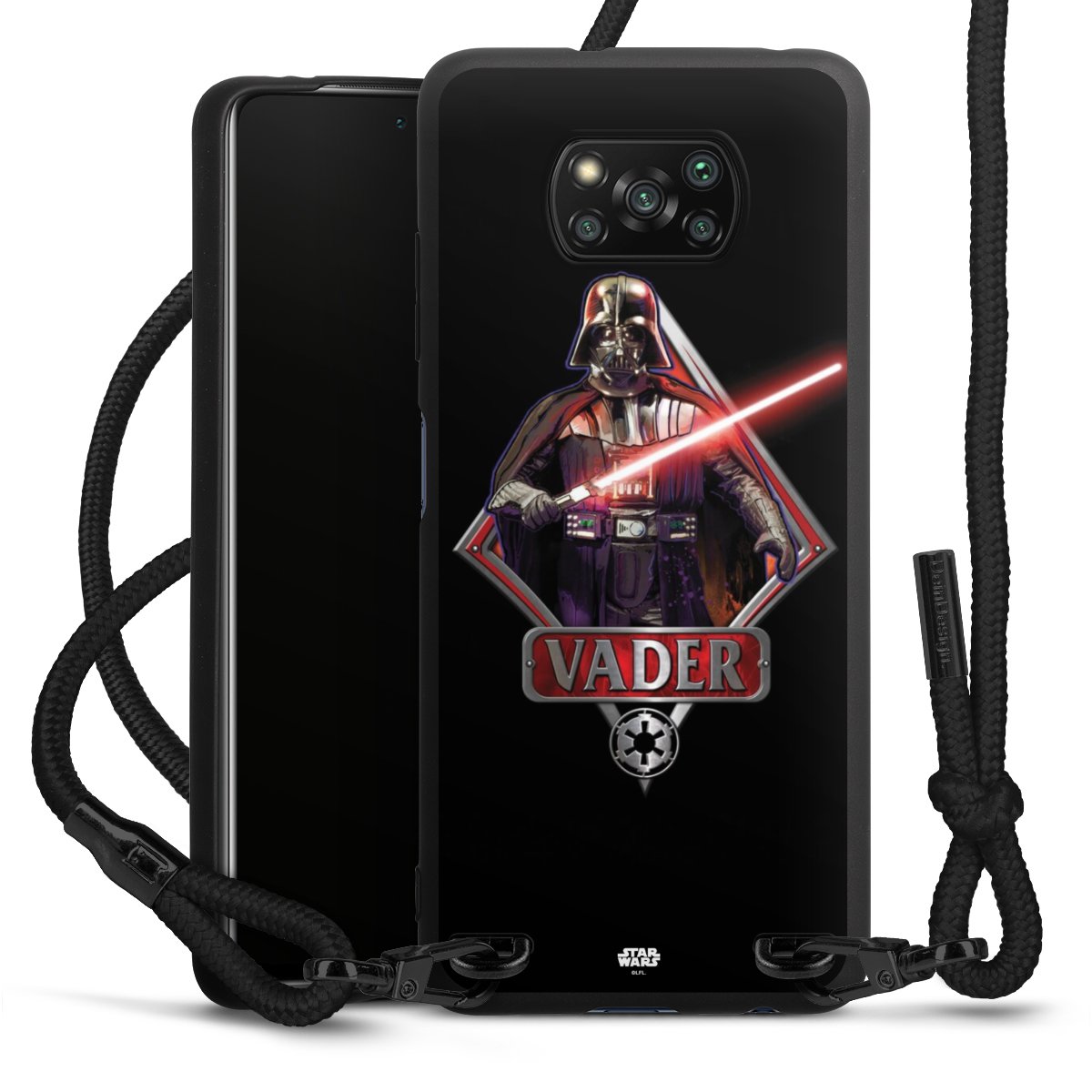 Pure Black: Phone case, fabric strap and metal details in stylish matt black.
