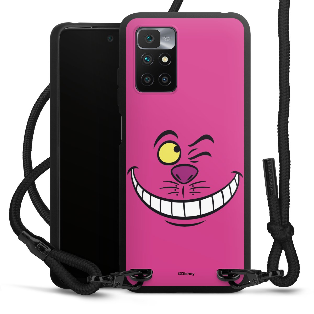 The matt black silicone case is made of flexible TPU (thermoplastic polyurethane) and offers robust protection. The durable, unbreakable material makes the cover flexible and dimensionally stable at the same time. The matte surface makes your design stand out more and is less susceptible to fingerprints and dirt. The stylish trend accessory fits comfortably in the hand and is perfectly complemented by the fabric (polyester) mobile phone strap. The braided fabric strap is approx. 1.70 metres long with a diameter of approx. 0.5 cm. Due to the special knotting technique, the length of the strap can be adjusted by simply pulling it, so that you can adapt it individually to your wishes. The practical case to wear around your neck is available with the fabric strap in black. As a little icing on the cake, we have provided the strap with a chic metal fastener in matt black. The strap is securely fastened to the case with loops made of high-quality genuine leather and press studs. The ends of the fabric strap are covered with metallic end caps and thus protected from fraying.