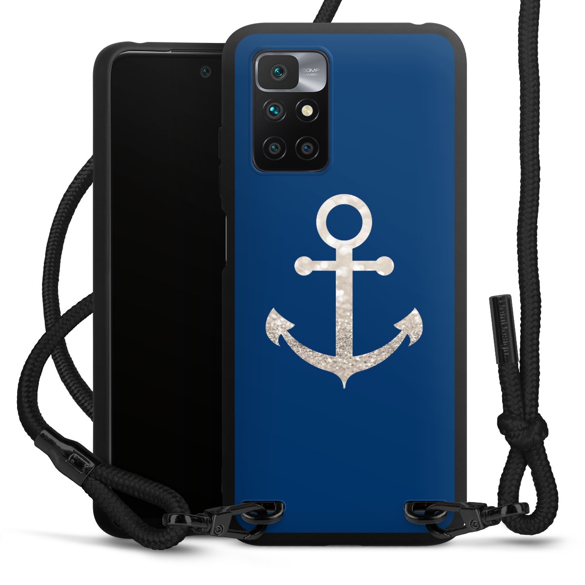 The matt black silicone case is made of flexible TPU (thermoplastic polyurethane) and offers robust protection. The durable, unbreakable material makes the cover flexible and dimensionally stable at the same time. The matte surface makes your design stand out more and is less susceptible to fingerprints and dirt. The stylish trend accessory fits comfortably in the hand and is perfectly complemented by the fabric (polyester) mobile phone strap. The braided fabric strap is approx. 1.70 metres long with a diameter of approx. 0.5 cm. Due to the special knotting technique, the length of the strap can be adjusted by simply pulling it, so that you can adapt it individually to your wishes. The practical case to wear around your neck is available with the fabric strap in black. As a little icing on the cake, we have provided the strap with a chic metal fastener in matt black. The strap is securely fastened to the case with loops made of high-quality genuine leather and press studs. The ends of the fabric strap are covered with metallic end caps and thus protected from fraying.