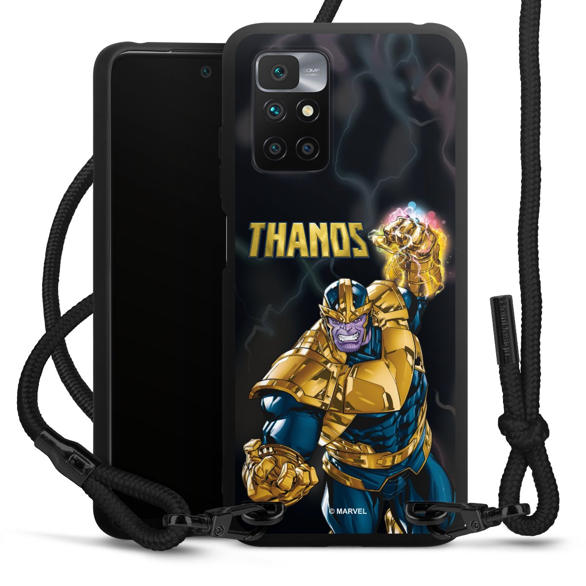 The matt black silicone case is made of flexible TPU (thermoplastic polyurethane) and offers robust protection. The durable, unbreakable material makes the cover flexible and dimensionally stable at the same time. The matte surface makes your design stand out more and is less susceptible to fingerprints and dirt. The stylish trend accessory fits comfortably in the hand and is perfectly complemented by the fabric (polyester) mobile phone strap. The braided fabric strap is approx. 1.70 metres long with a diameter of approx. 0.5 cm. Due to the special knotting technique, the length of the strap can be adjusted by simply pulling it, so that you can adapt it individually to your wishes. The practical case to wear around your neck is available with the fabric strap in black. As a little icing on the cake, we have provided the strap with a chic metal fastener in matt black. The strap is securely fastened to the case with loops made of high-quality genuine leather and press studs. The ends of the fabric strap are covered with metallic end caps and thus protected from fraying.
