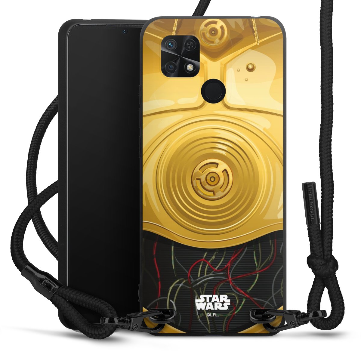 The matt black silicone case is made of flexible TPU (thermoplastic polyurethane) and offers robust protection. The durable, unbreakable material makes the cover flexible and dimensionally stable at the same time. The matte surface makes your design stand out more and is less susceptible to fingerprints and dirt. The stylish trend accessory fits comfortably in the hand and is perfectly complemented by the fabric (polyester) mobile phone strap. The braided fabric strap is approx. 1.70 metres long with a diameter of approx. 0.5 cm. Due to the special knotting technique, the length of the strap can be adjusted by simply pulling it, so that you can adapt it individually to your wishes. The practical case to wear around your neck is available with the fabric strap in black. As a little icing on the cake, we have provided the strap with a chic metal fastener in matt black. The strap is securely fastened to the case with loops made of high-quality genuine leather and press studs. The ends of the fabric strap are covered with metallic end caps and thus protected from fraying.