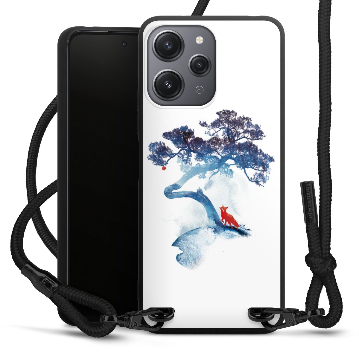 We use the solid direct print process for this phone case, which is why the print area only covers the back and the edge remains unprinted. The case to wear around your neck can be ordered unprinted, fully printed, or partially printed. For your design, either choose one of our exclusive shop motifs or get creative and create your own design, for example with photos and overlays. Design your own personal trend accessory and make an individual statement on the streets!