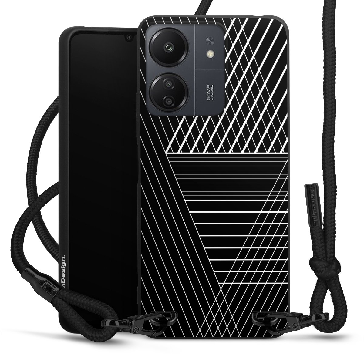 We use the solid direct print process for this phone case, which is why the print area only covers the back and the edge remains unprinted. The case to wear around your neck can be ordered unprinted, fully printed, or partially printed. For your design, either choose one of our exclusive shop motifs or get creative and create your own design, for example with photos and overlays. Design your own personal trend accessory and make an individual statement on the streets!