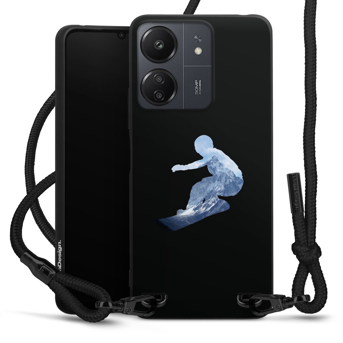 We use the solid direct print process for this phone case, which is why the print area only covers the back and the edge remains unprinted. The case to wear around your neck can be ordered unprinted, fully printed, or partially printed. For your design, either choose one of our exclusive shop motifs or get creative and create your own design, for example with photos and overlays. Design your own personal trend accessory and make an individual statement on the streets!