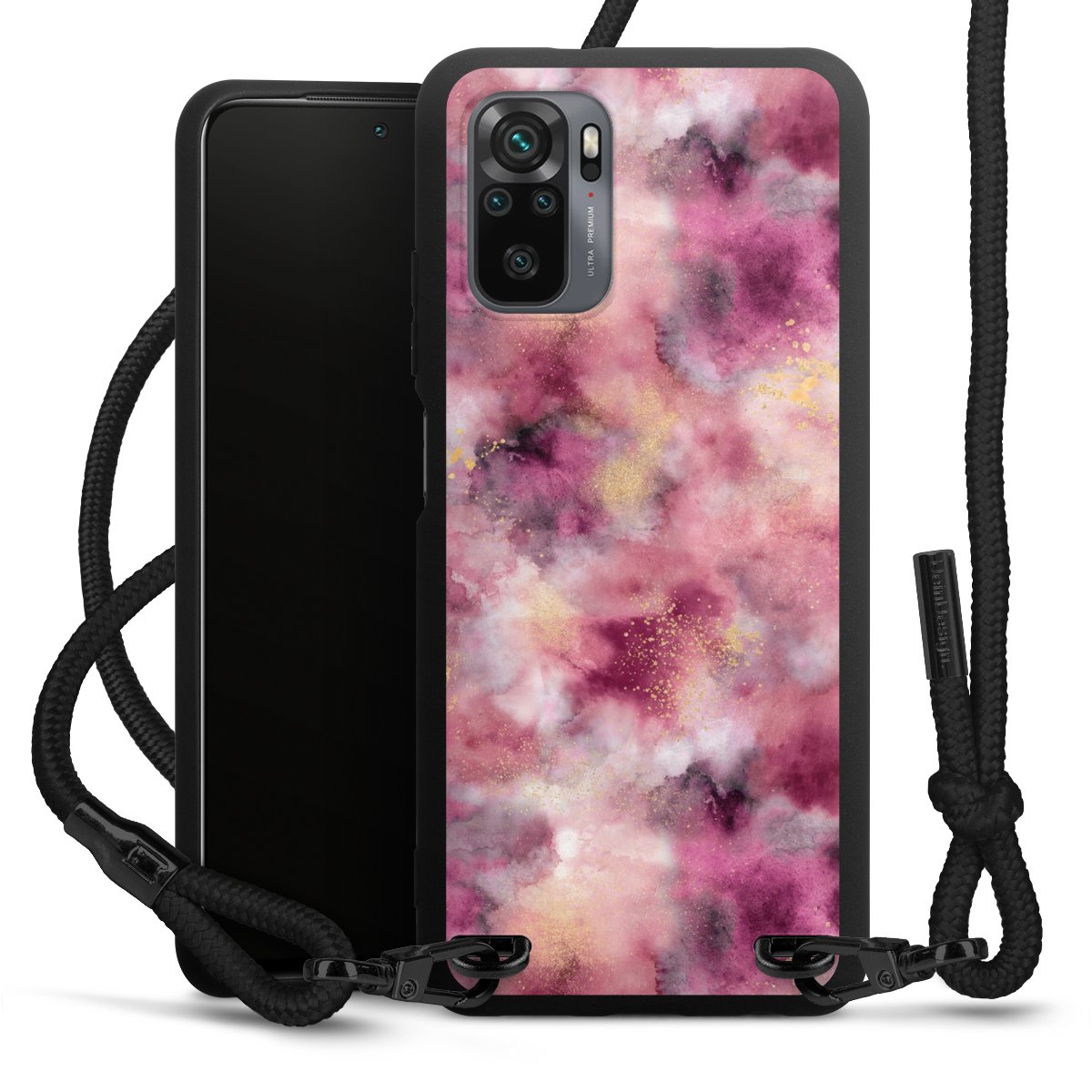We use the solid direct print process for this phone case, which is why the print area only covers the back and the edge remains unprinted. The case to wear around your neck can be ordered unprinted, fully printed, or partially printed. For your design, either choose one of our exclusive shop motifs or get creative and create your own design, for example with photos and overlays. Design your own personal trend accessory and make an individual statement on the streets!