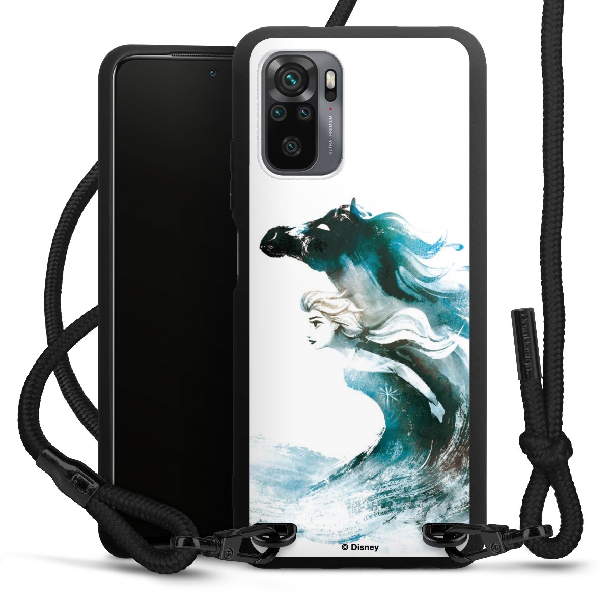 The matt black silicone case is made of flexible TPU (thermoplastic polyurethane) and offers robust protection. The durable, unbreakable material makes the cover flexible and dimensionally stable at the same time. The matte surface makes your design stand out more and is less susceptible to fingerprints and dirt. The stylish trend accessory fits comfortably in the hand and is perfectly complemented by the fabric (polyester) mobile phone strap. The braided fabric strap is approx. 1.70 metres long with a diameter of approx. 0.5 cm. Due to the special knotting technique, the length of the strap can be adjusted by simply pulling it, so that you can adapt it individually to your wishes. The practical case to wear around your neck is available with the fabric strap in black. As a little icing on the cake, we have provided the strap with a chic metal fastener in matt black. The strap is securely fastened to the case with loops made of high-quality genuine leather and press studs. The ends of the fabric strap are covered with metallic end caps and thus protected from fraying.